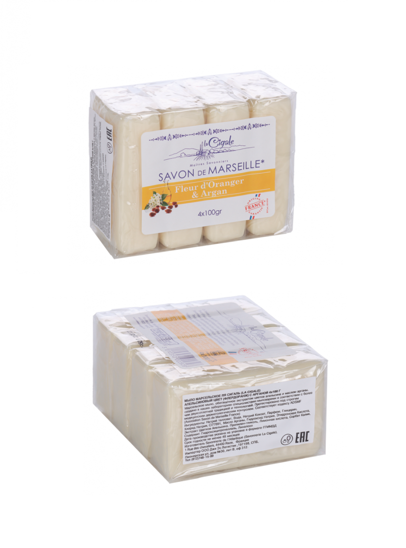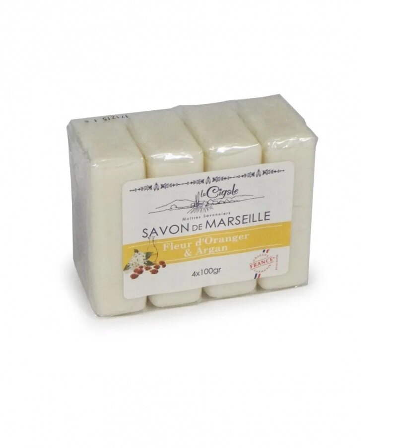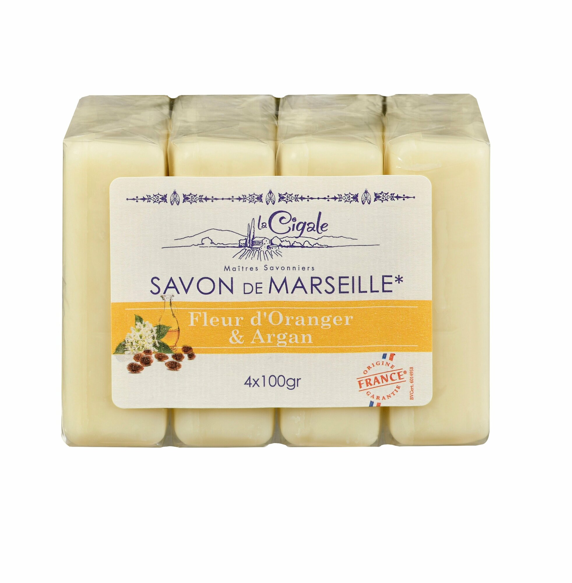 Купить Мыло твердое Марсельское с аргановым маслом и цветком апельсина 4 x 100 г, La Cigale (Франция)