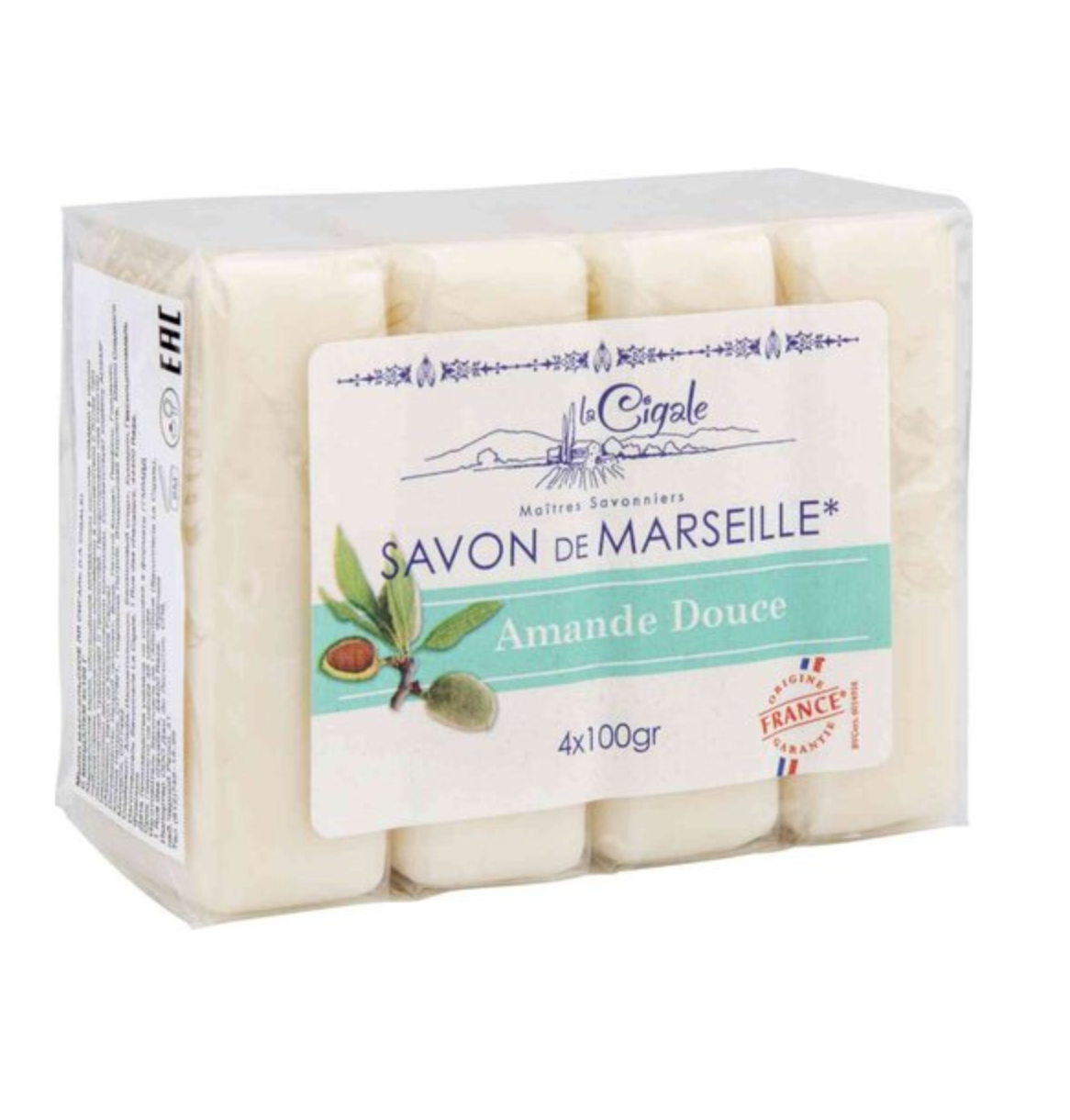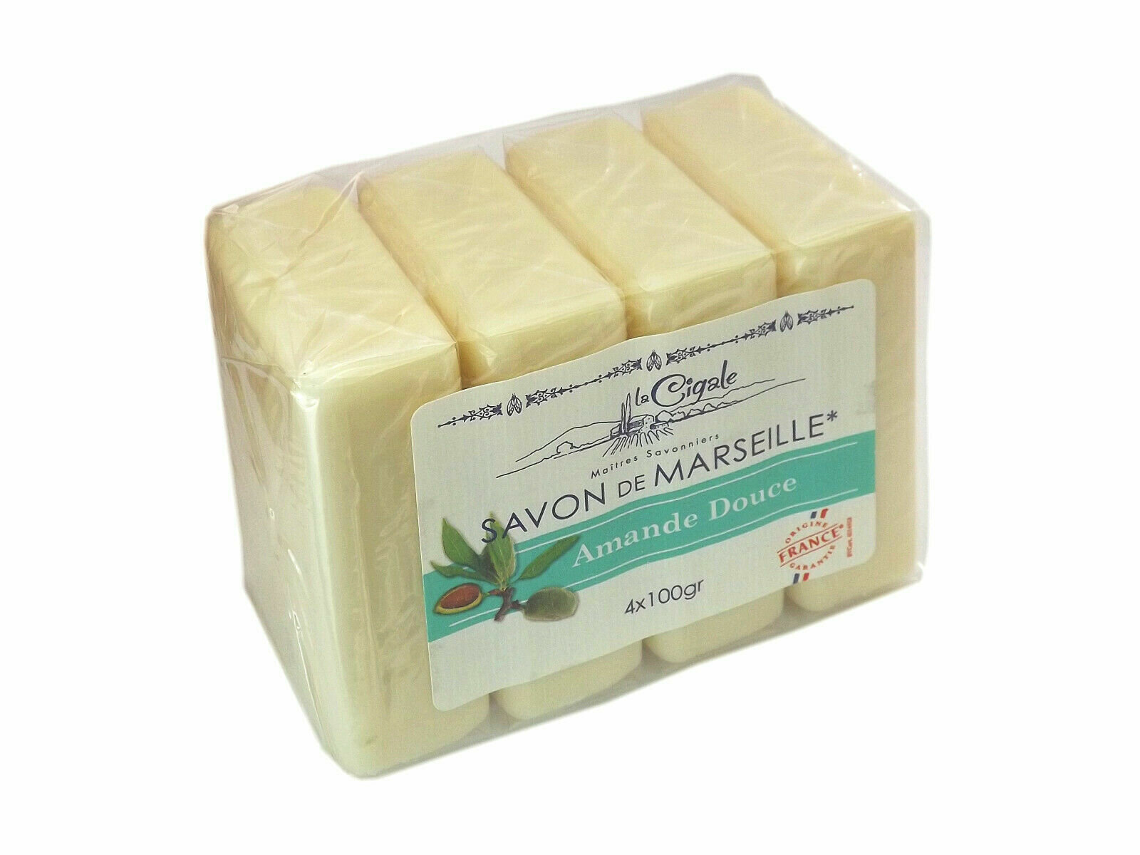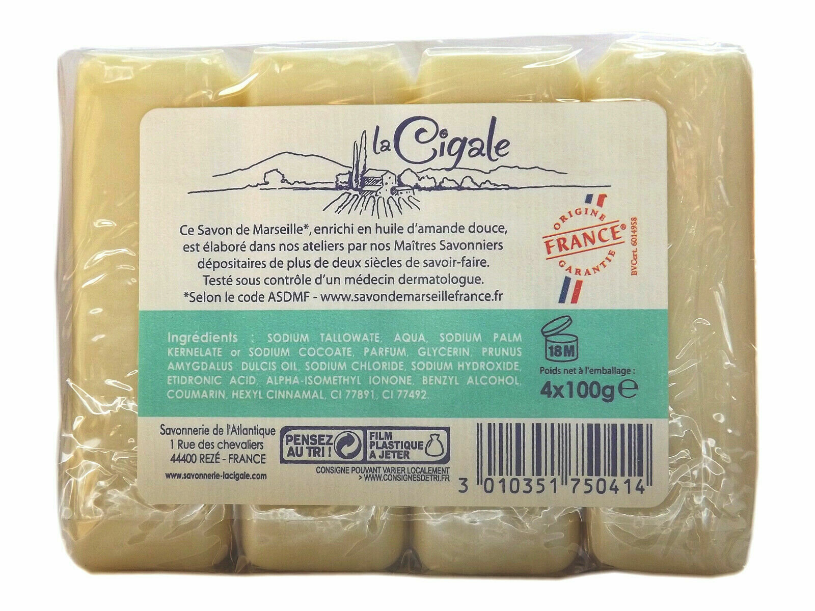 Купить Мыло твердое Марсельское с миндалем 4 x 100 г, La Cigale (Франция)