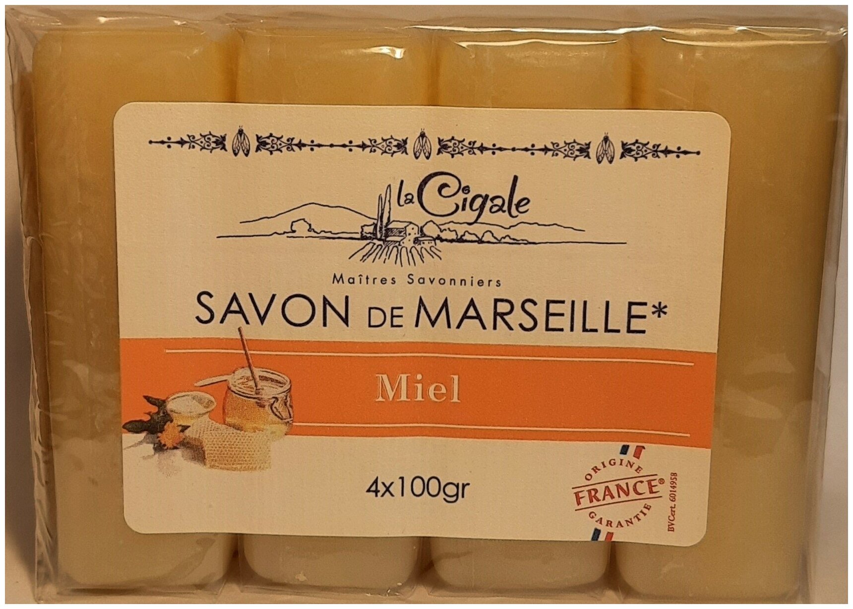 Купить Мыло твердое Марсельское с медом 4 x 100 г, La Cigale (Франция)