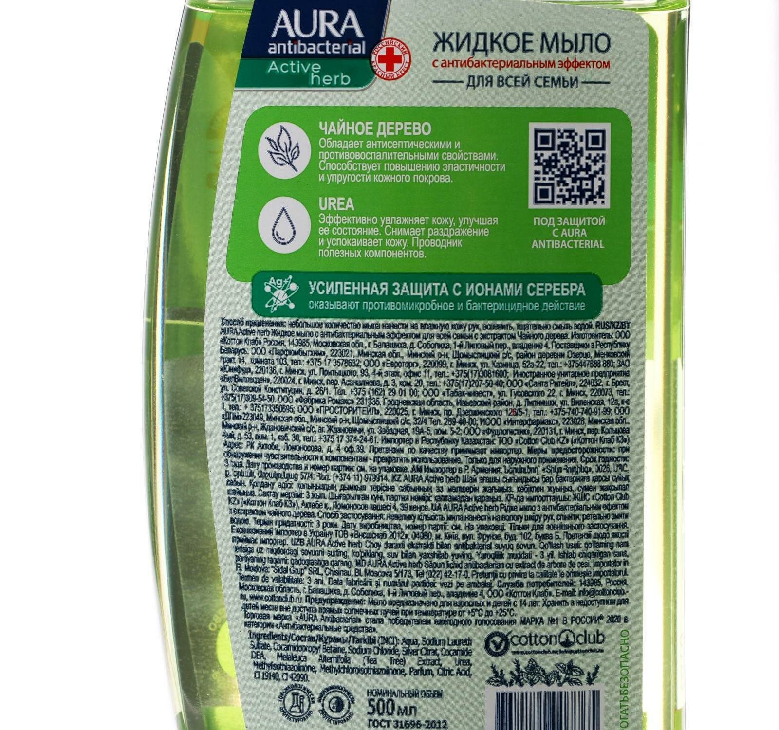 Жидкое мыло для рук Aura антибактериальное, 500 мл, чайное дерево интересное: