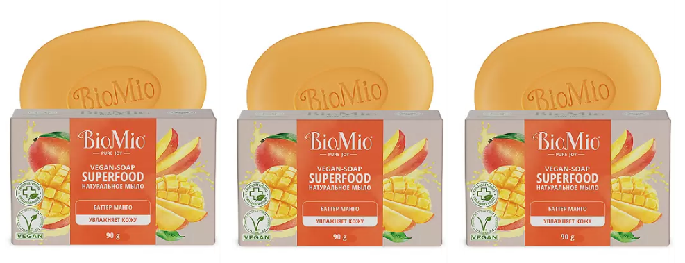 BioMio Натуральное веганское мыло с баттером манго, 90 г., 3 шт.
