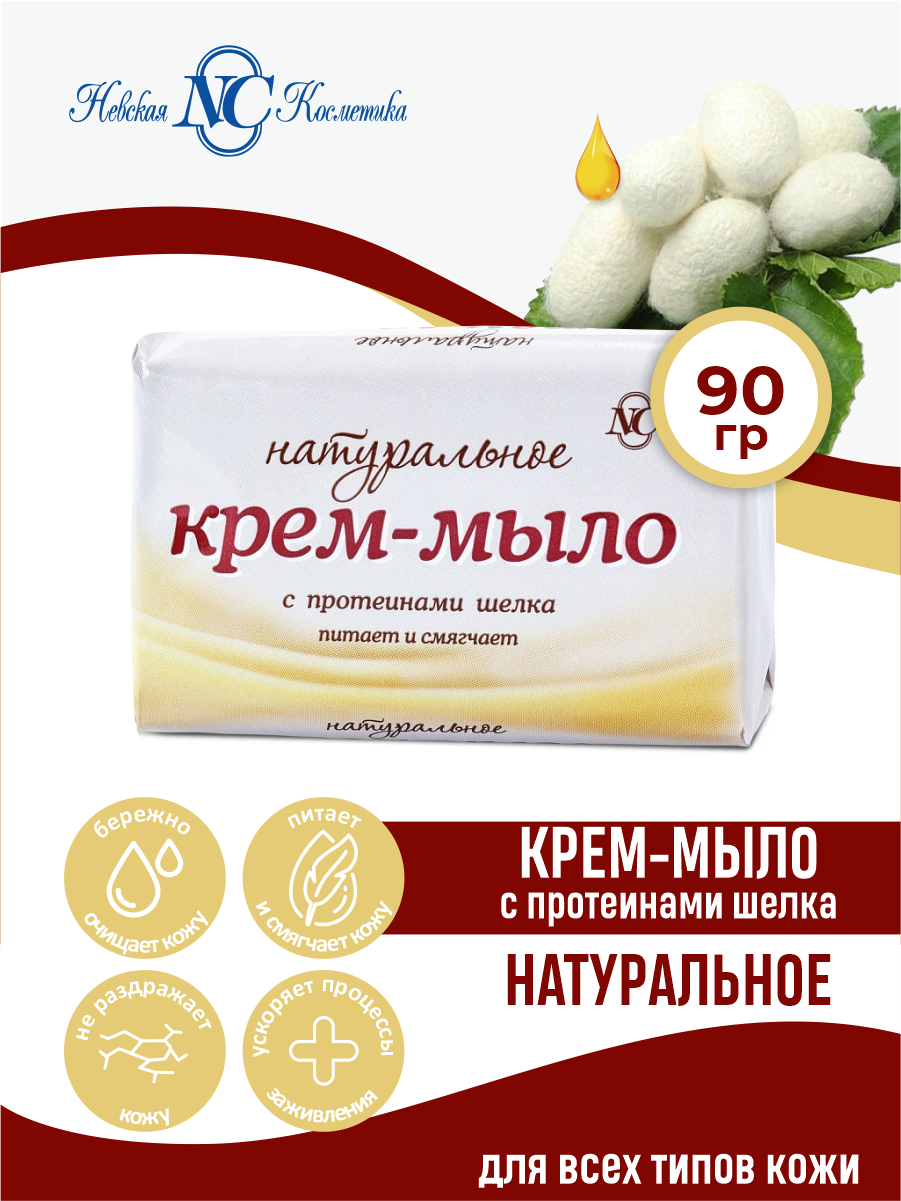 Мыло туалетное натуральное 90г крем-мыло с протеинами шелка