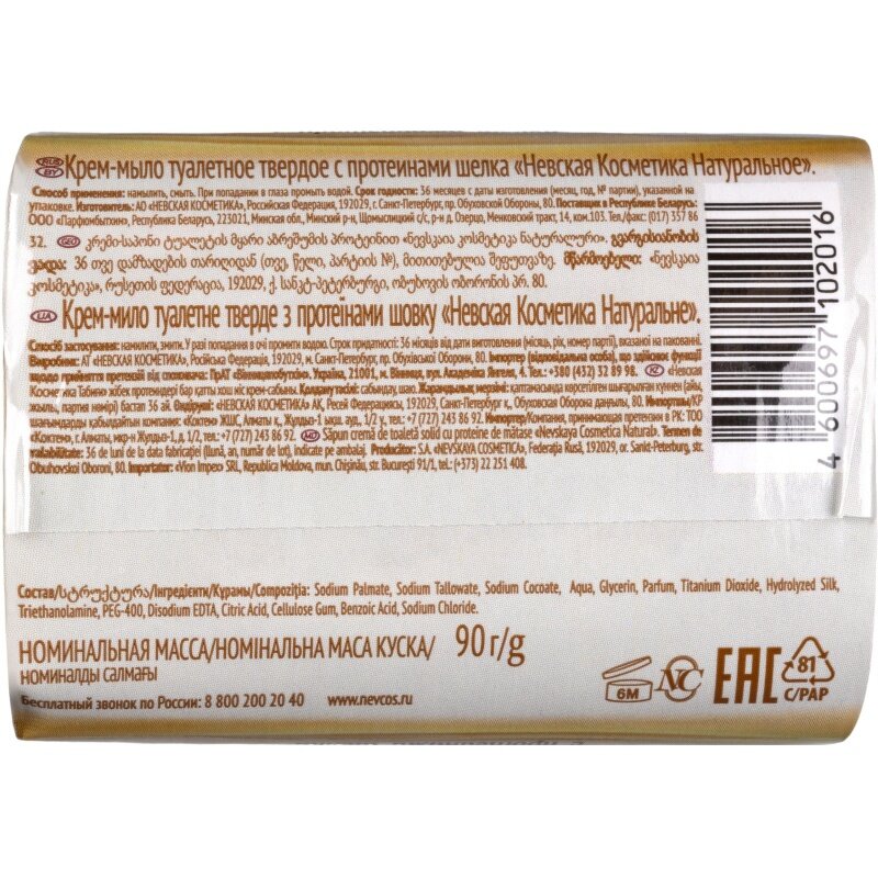Крем-мыло с протеинами шелка Невская Косметика Натуральное 90 гр. х 4 шт.