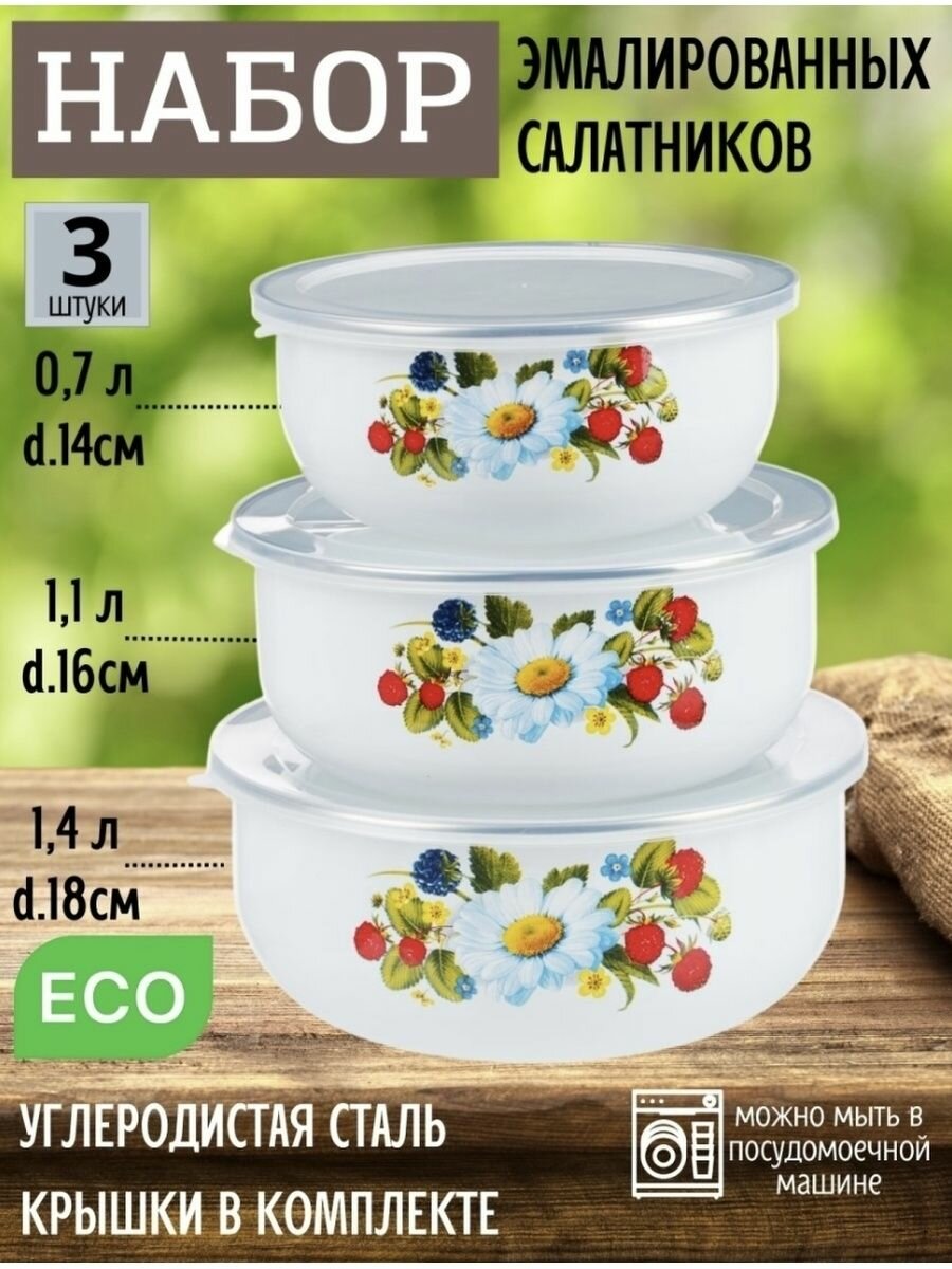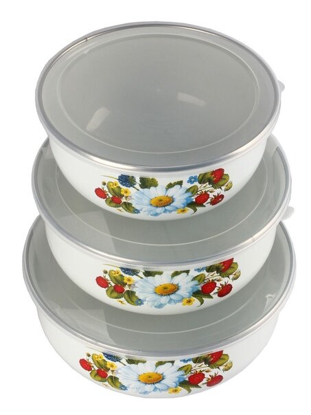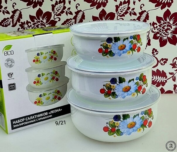 Набор эмалированных салатников с крышками, 6пр. (14/16/18см, 0,7/1,1/1,4л) "Леона" интересное: