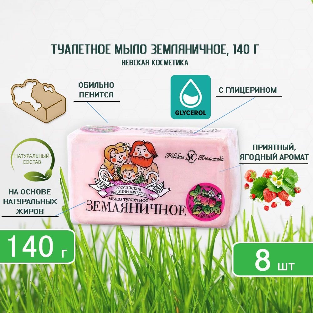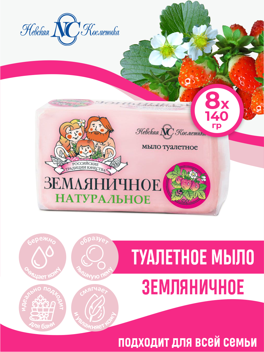 Купить Туалетное мыло Невская Косметика Земляничное 140 гр. х 8 шт.