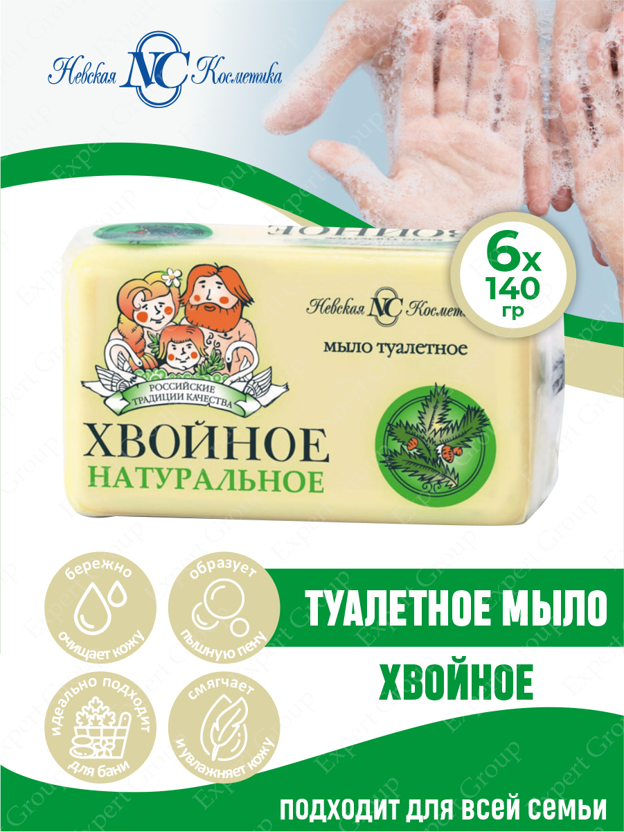 СохранитьТуалетное мыло Невская Косметика Хвойное 140 гр. х 6 шт. интересное: