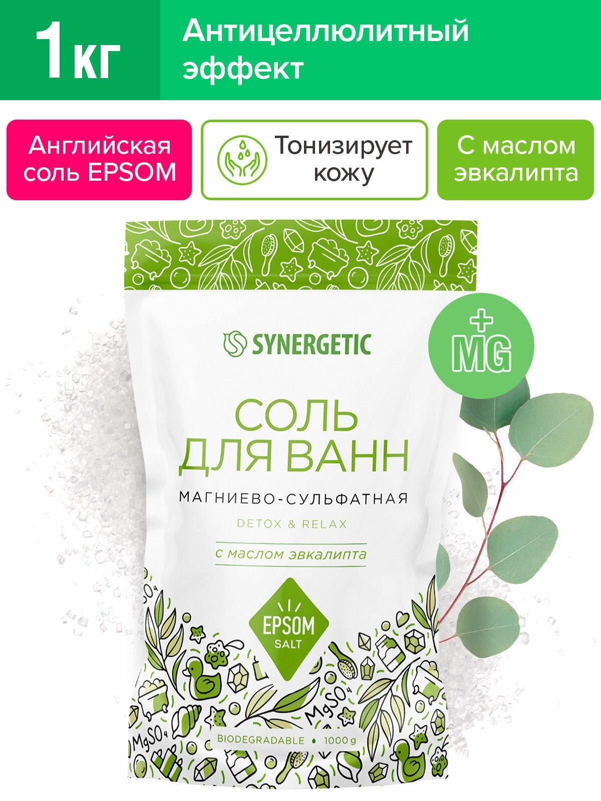 Соль для ванн магниево-сульфатная с маслом эвкалипта SYNERGETIC интересное: