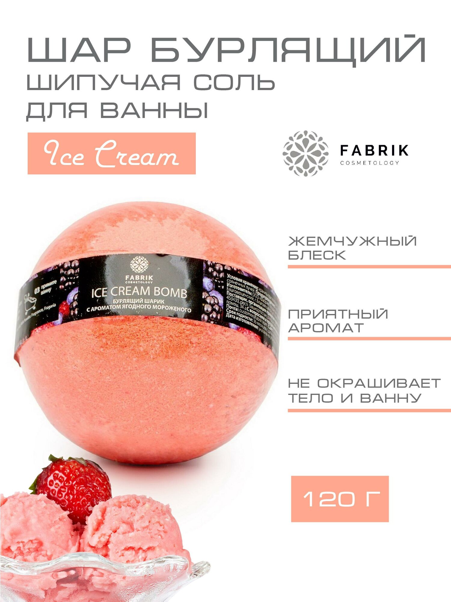 | Дополнительная информация | Шар для ванны FABRIK Ягодное мороженное 120г |