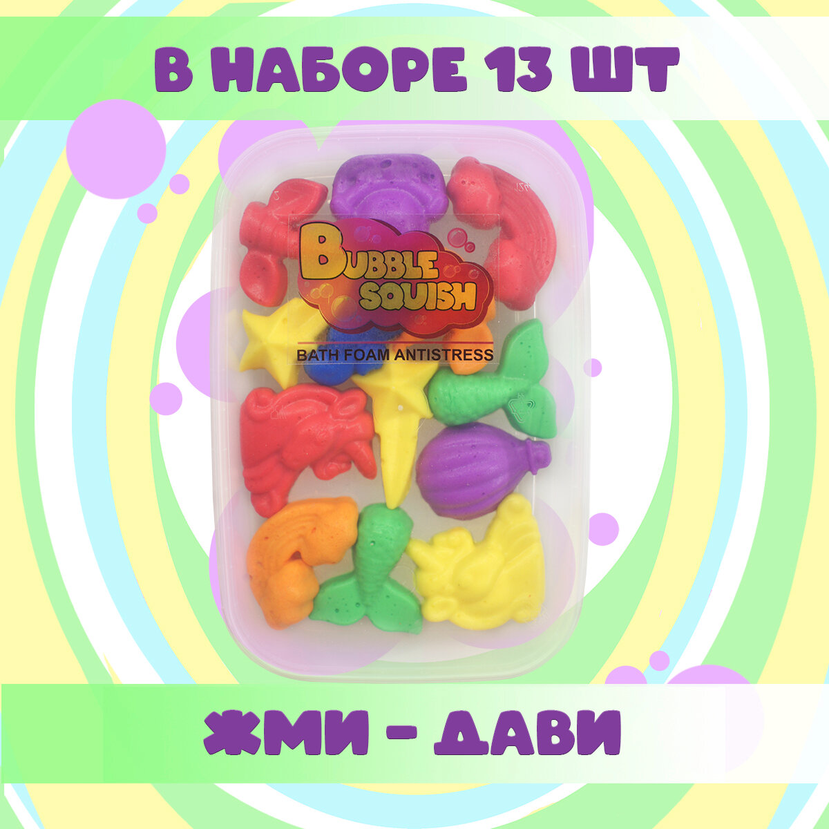 Купить Пена для ванны и игрушка сквиши от Bubble squish / Набор 13 шт / мялка Бабл сквиш
