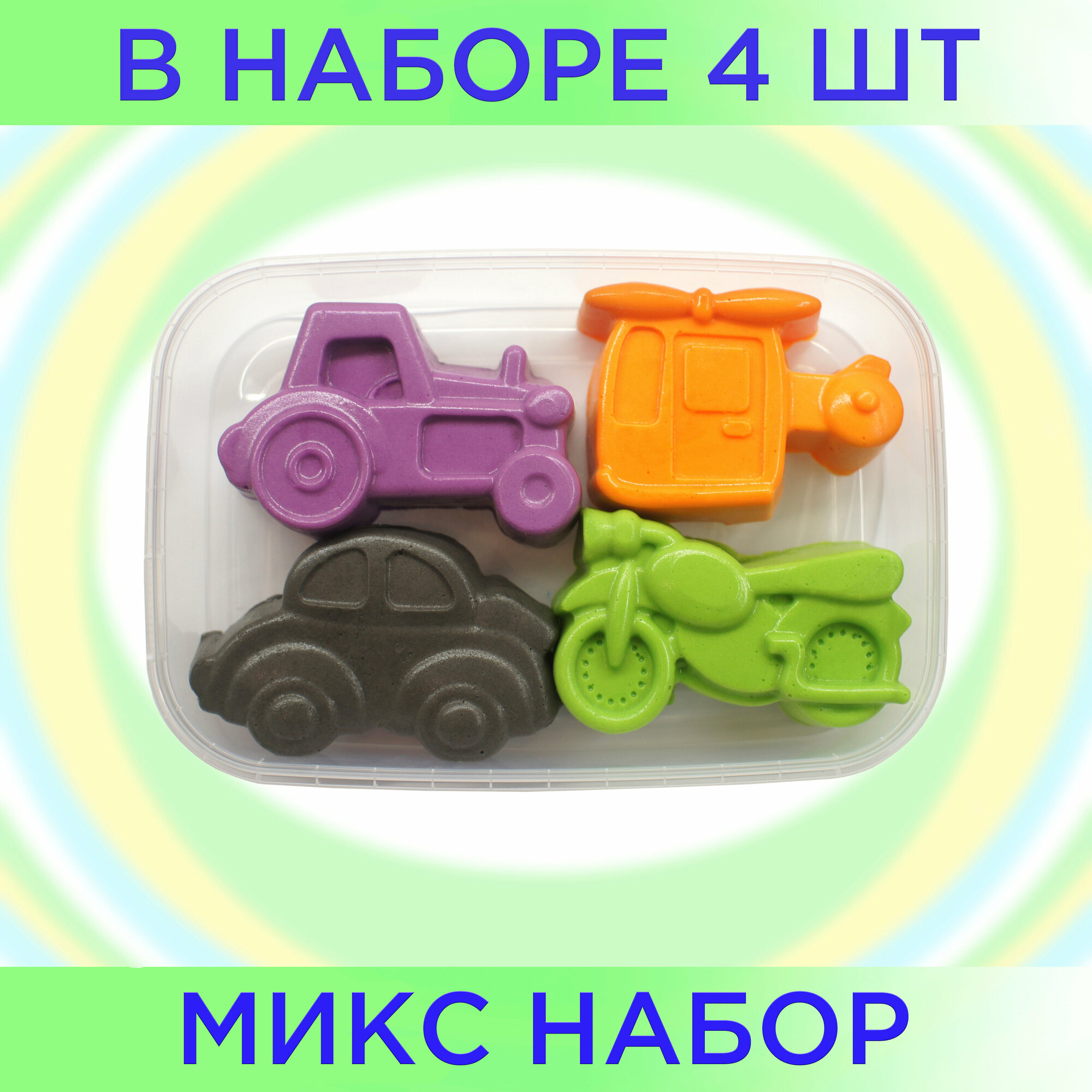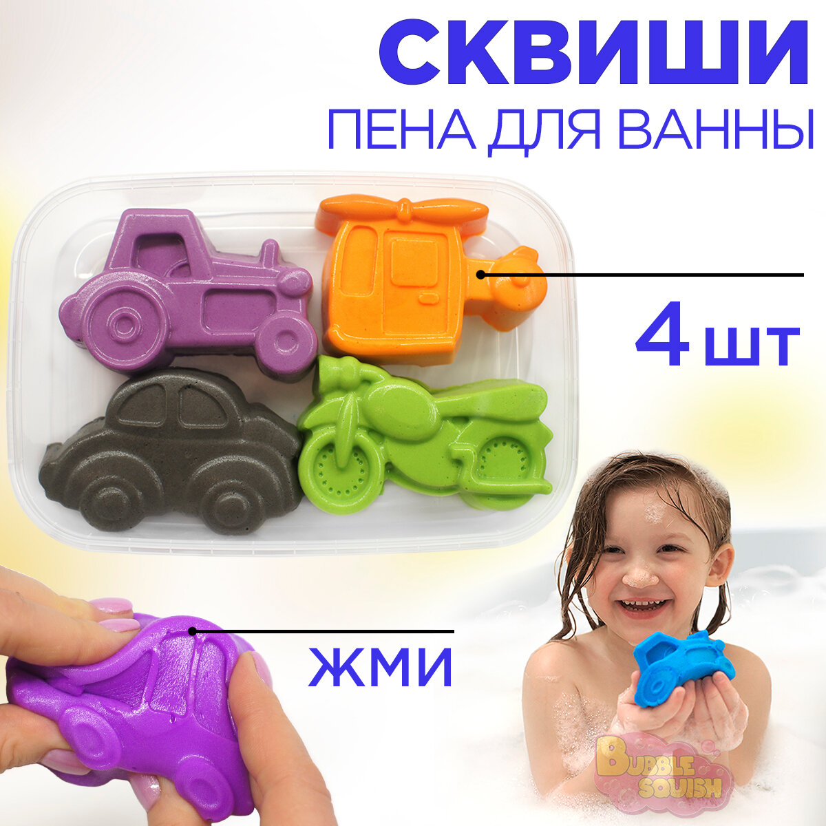Пена для ванны сквиши от Bubble squish / Набор 4 шт серия транспорт/ мялка Бабл сквиш