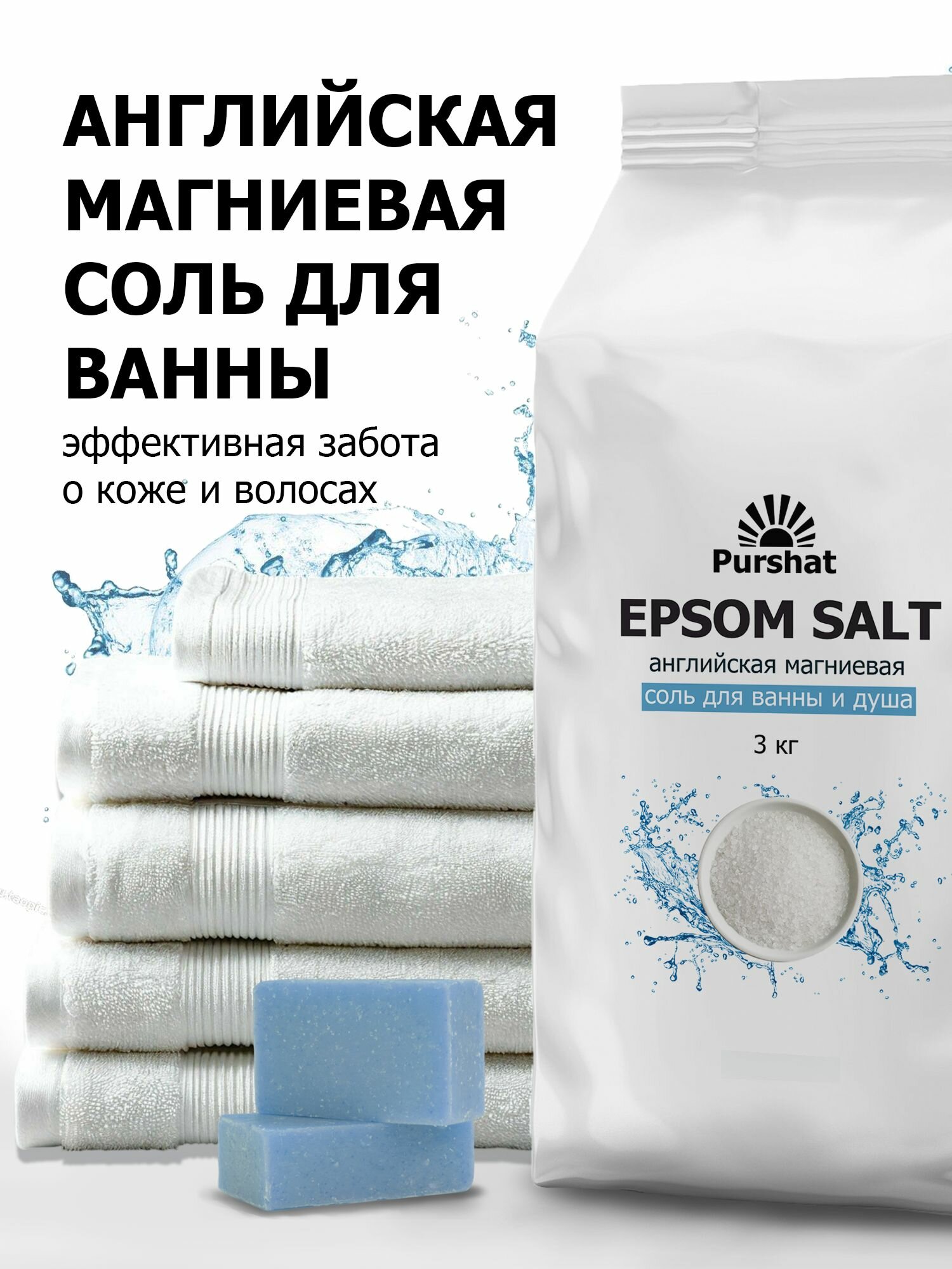 Английская магниевая соль для ванны и душа Epsom Purshat 3 кг - натуральный SPA-комплекс для здоровья