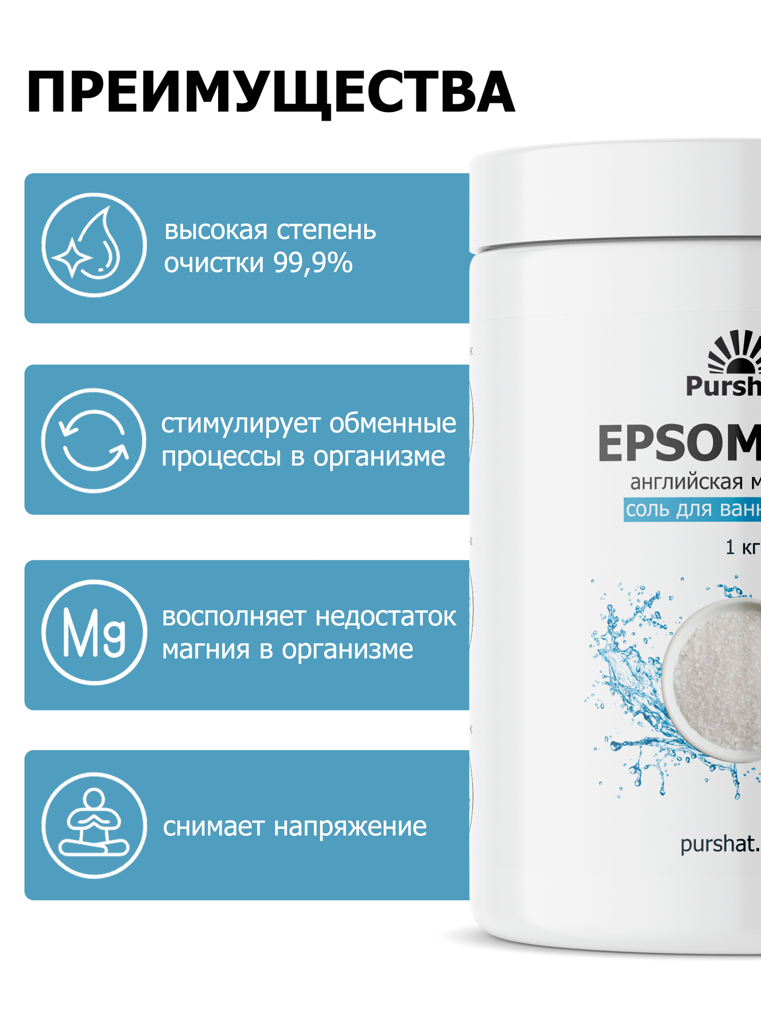 Английская магниевая соль для ванны Epsom Purshat 1 кг интересное: