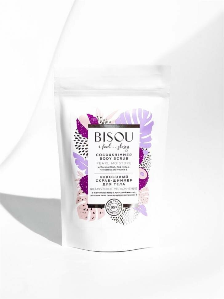 Купить Bisou I feel…glossy Кокосовый скраб-шиммер для тела Жемчужное увлажнение 200 г