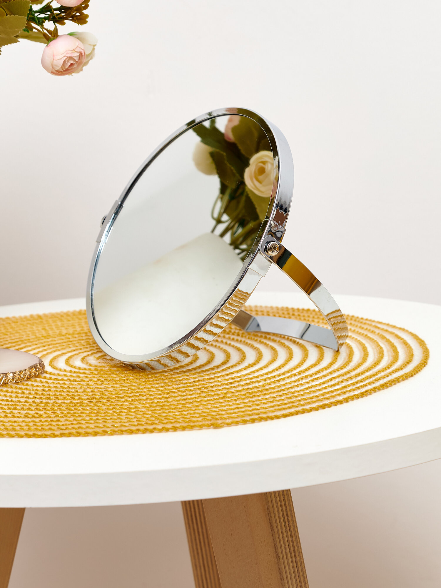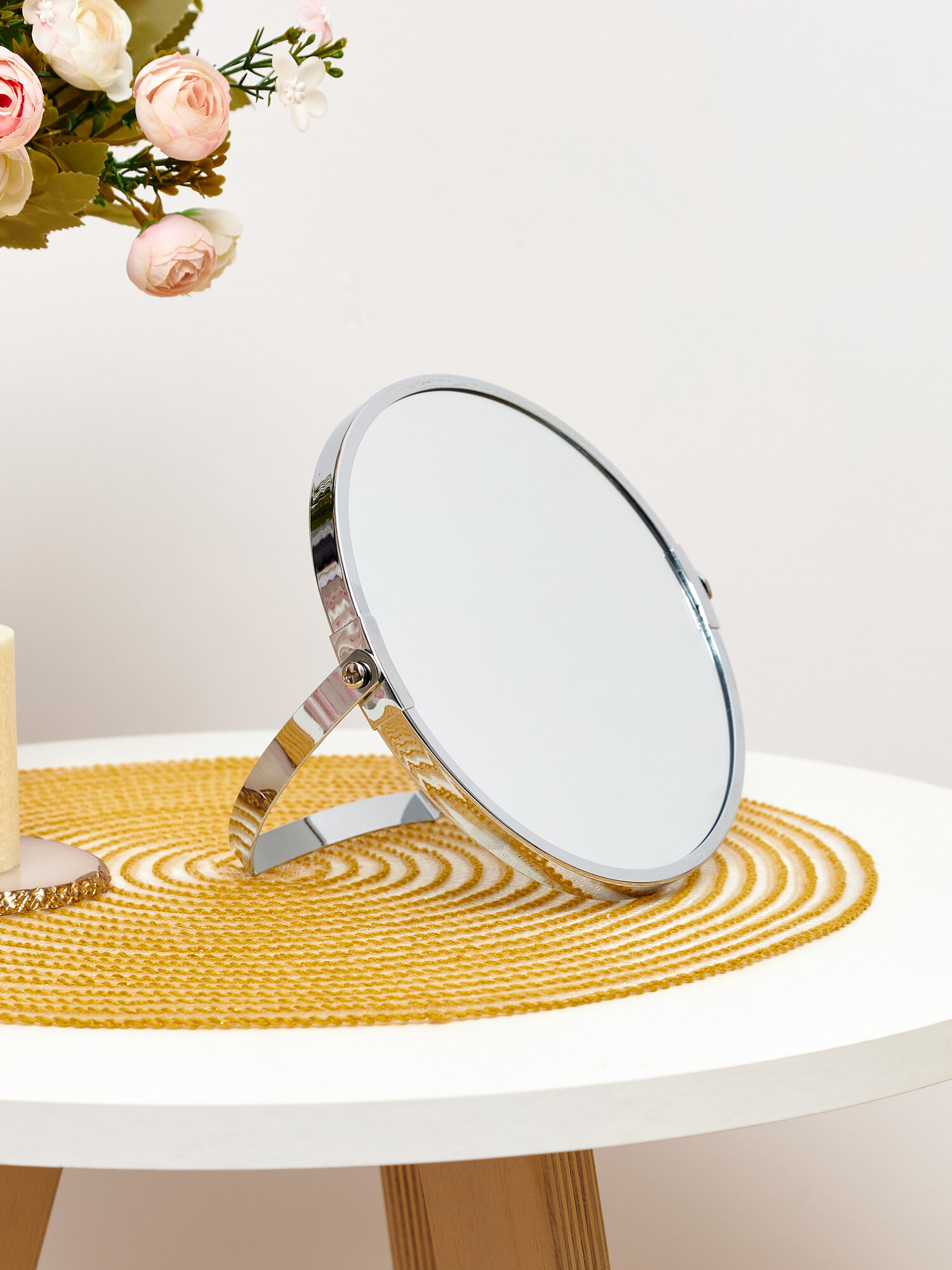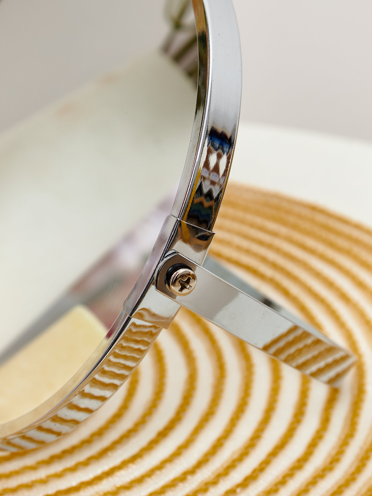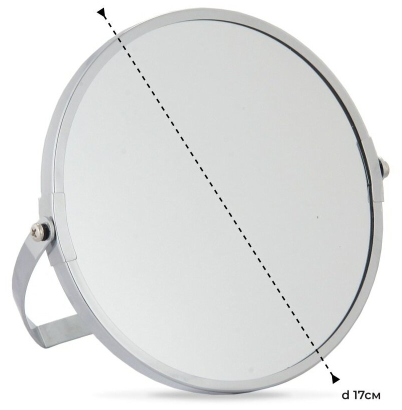 Зеркало настольное круглое железное двустороннее разного увеличения 16 см