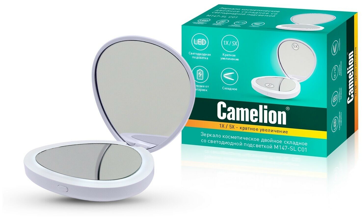 Косметическое зеркало Camelion M147-SL C01 белый интересное: