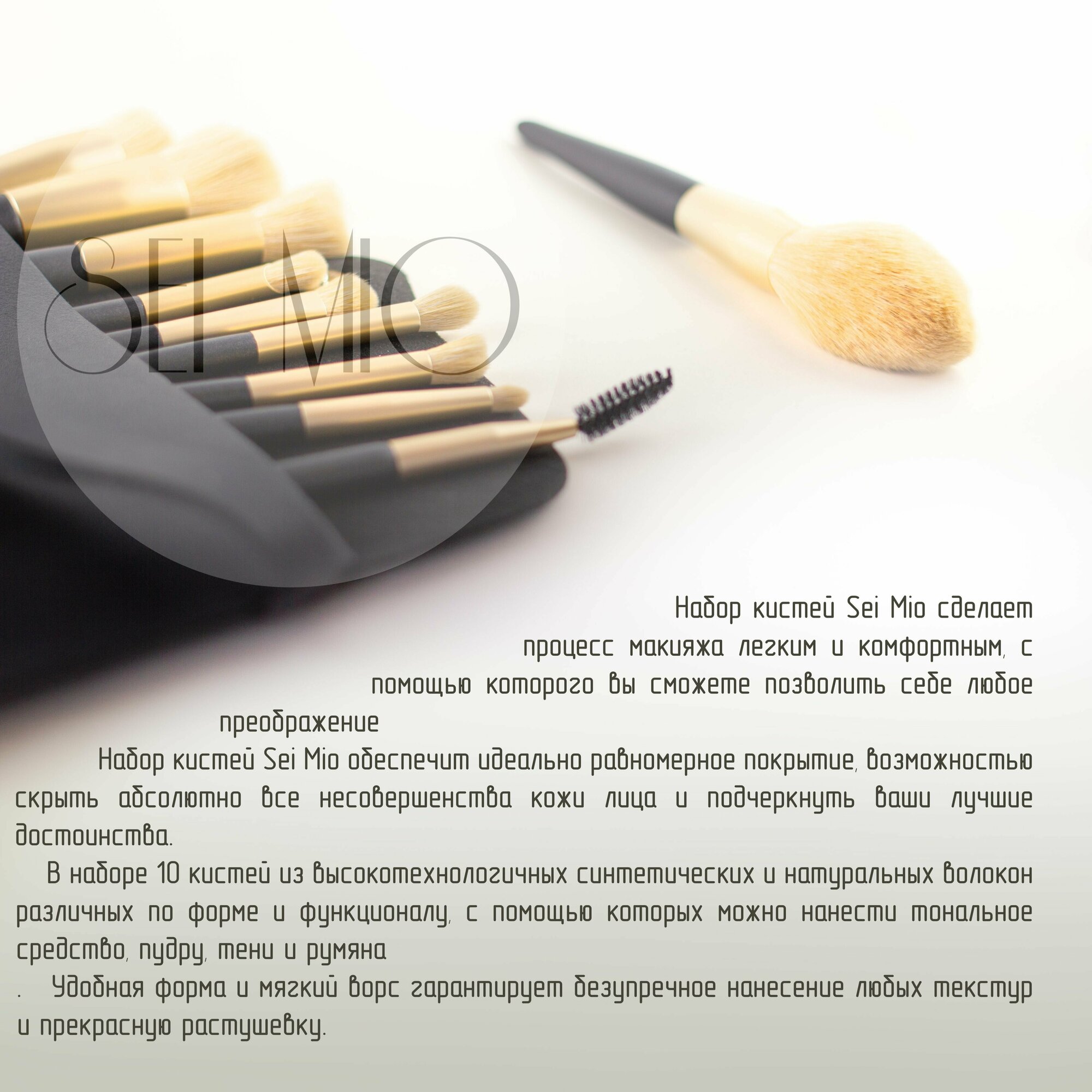 Профессиональный набор кистей для макияжа SEI MIO, 10 шт. золотые с чехлом интересное: