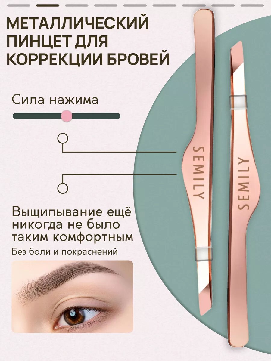 Профессиональный пинцет для бровей Semily, цвет розовый 9,5 см интересное: