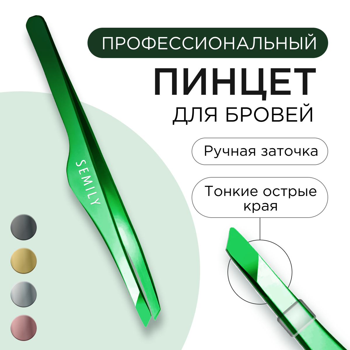 Профессиональный пинцет для бровей Semily, цвет зелёный 9,5 см интересное: