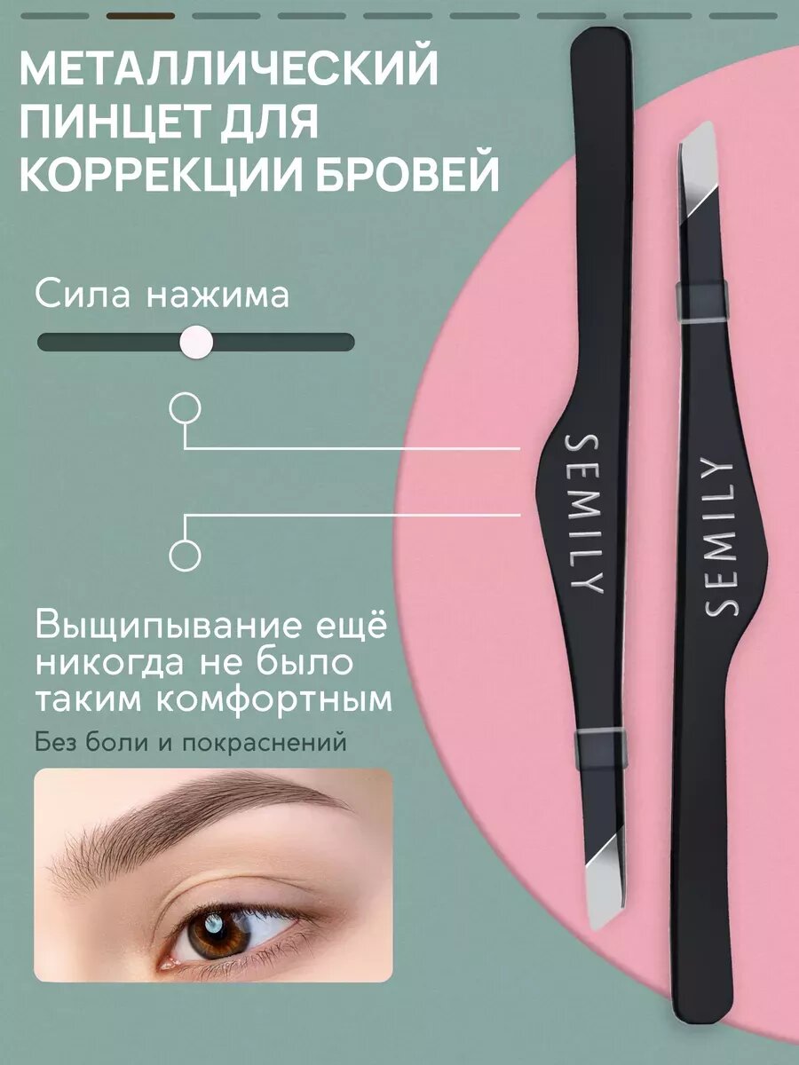 Профессиональный пинцет для бровей Semily, цвет черный 9,5 см интересное: