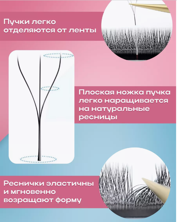 Ресницы черные Nagaraku W-shape 3D mix С 0.07 8-15mm, готовые пучки интересное:
