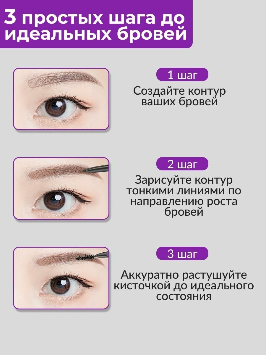 | Способ применения | выдвинуть грифель карандаша, нанести контур, тонкими линиями прорисовать волоски, расчесать шеточкой |