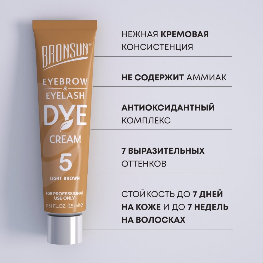 Bronsun Крем-краска для бровей и ресниц, #5 светло-коричневый, 15 мл