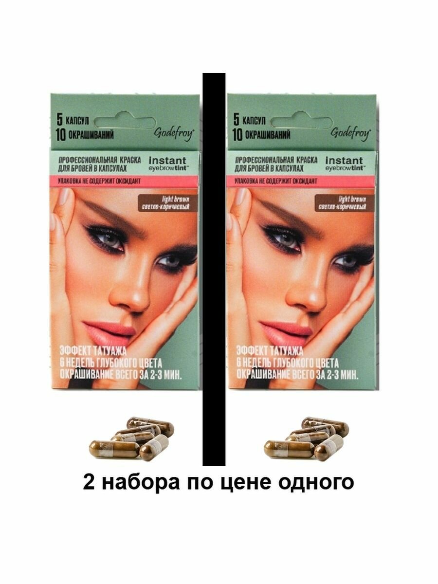 Godefroy Eyebrow Tint Graphite 2 Набора профес. краски для бровей по 5 капсул (светло-коричневый) интересное: