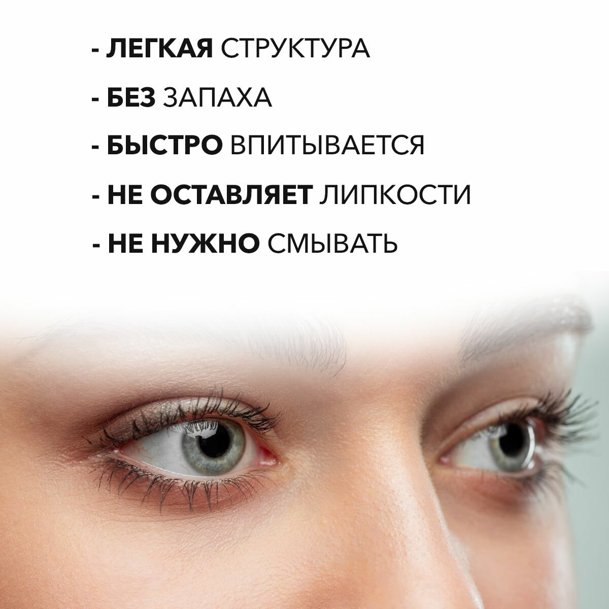 | Способ применения | 1. Очистите кожу вокруг глаз и бровей. Если пользуетесь линзами, снимите их. 2. Нанесите сыворотку по линии роста ресниц или бровей. 3. Дождитесь полного впитывания |