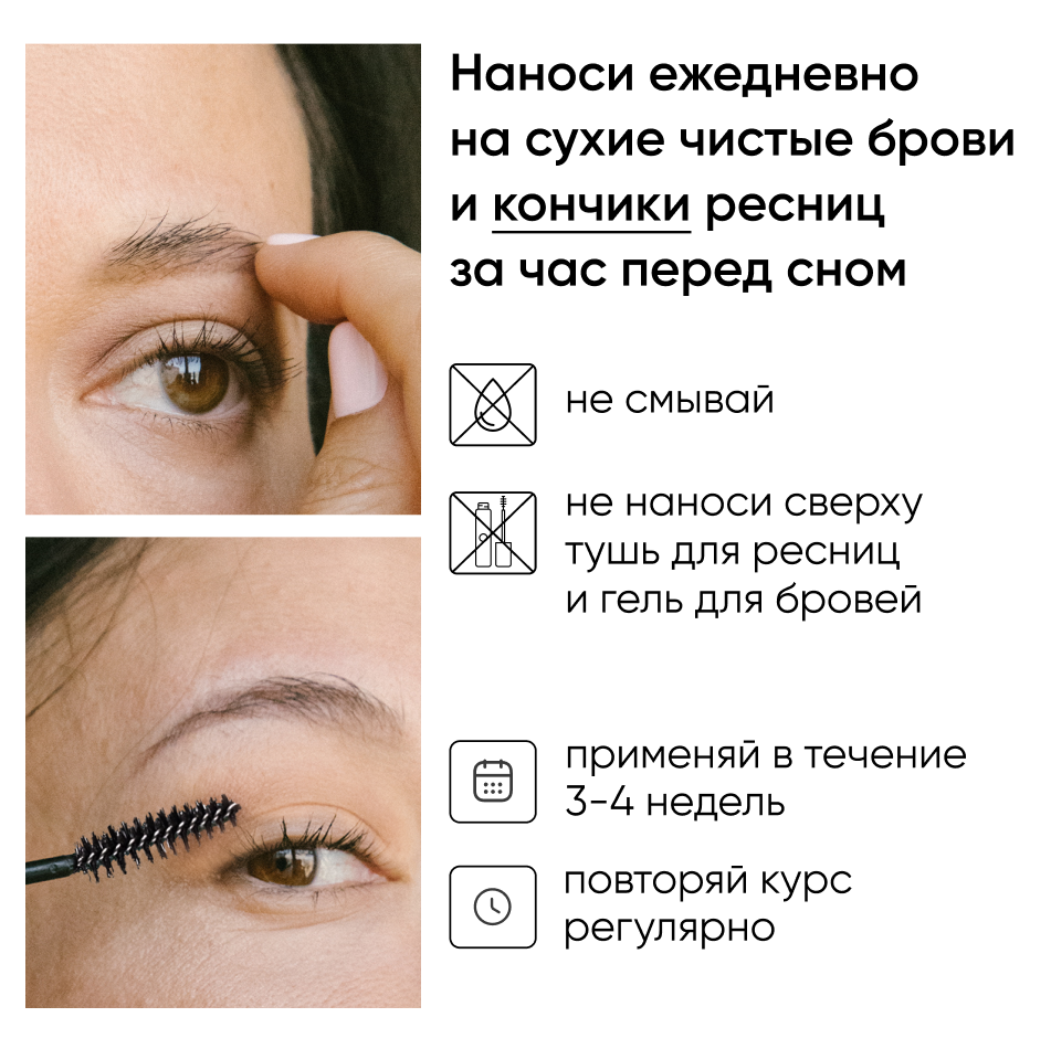 | Способ применения | Наносить дважды в день, не смывать. Не наносить тушь сверху. Не использовать на нарощеных ресницах |
