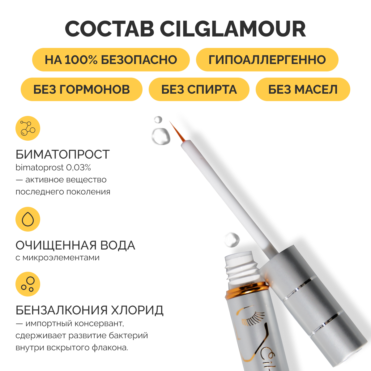 Cil-Glamour Средство для роста ресниц На основе биматопроста, 3 мл интересное: