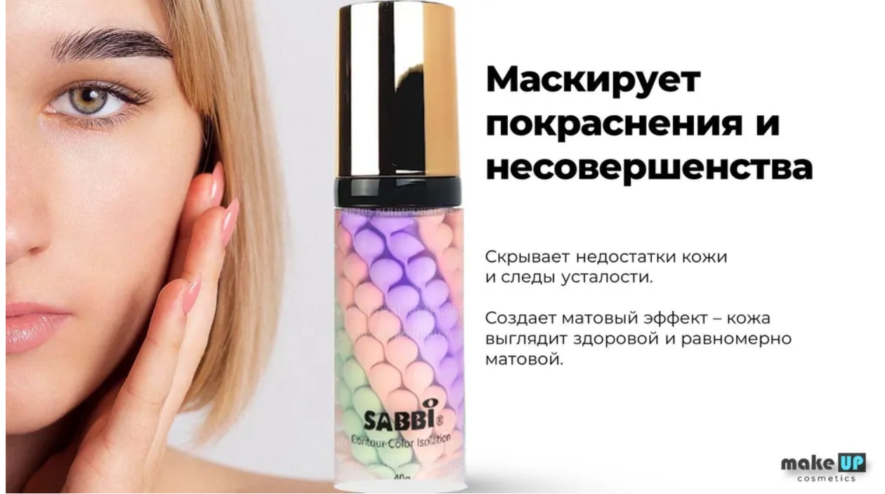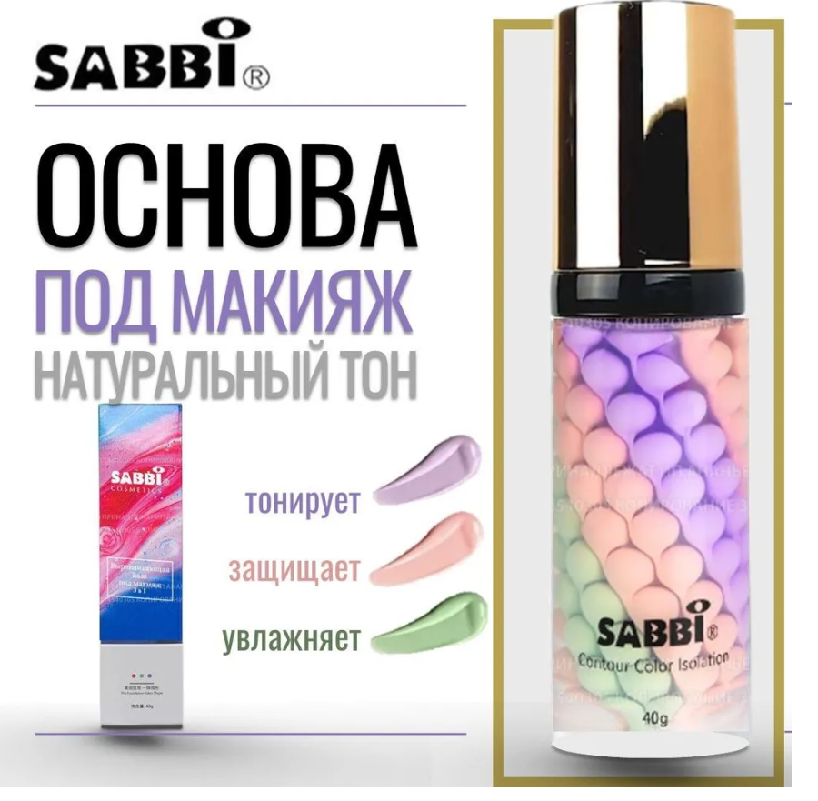 SABBI Трехцветная выравнивающая основа под макияж Isolation Three Color Grooming, 49 мл, 40 г, розовый/зеленый/фиолетовый интересное: