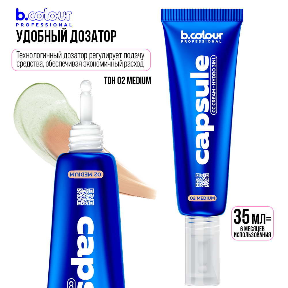 B.COLOUR PROFESSIONAL CC крем для лица, тональный крем увлажняющий, корректирующий CAPSULE 02 MEDIUM