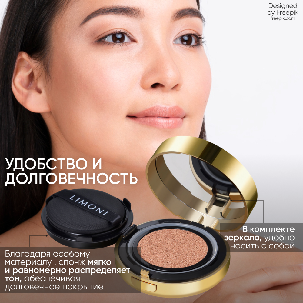 LIMONI Тональный крем кушон для лица с SPF 35/PA++ Корея, основа под макияж Puppy Princess (тон 01, светло-бежевый)