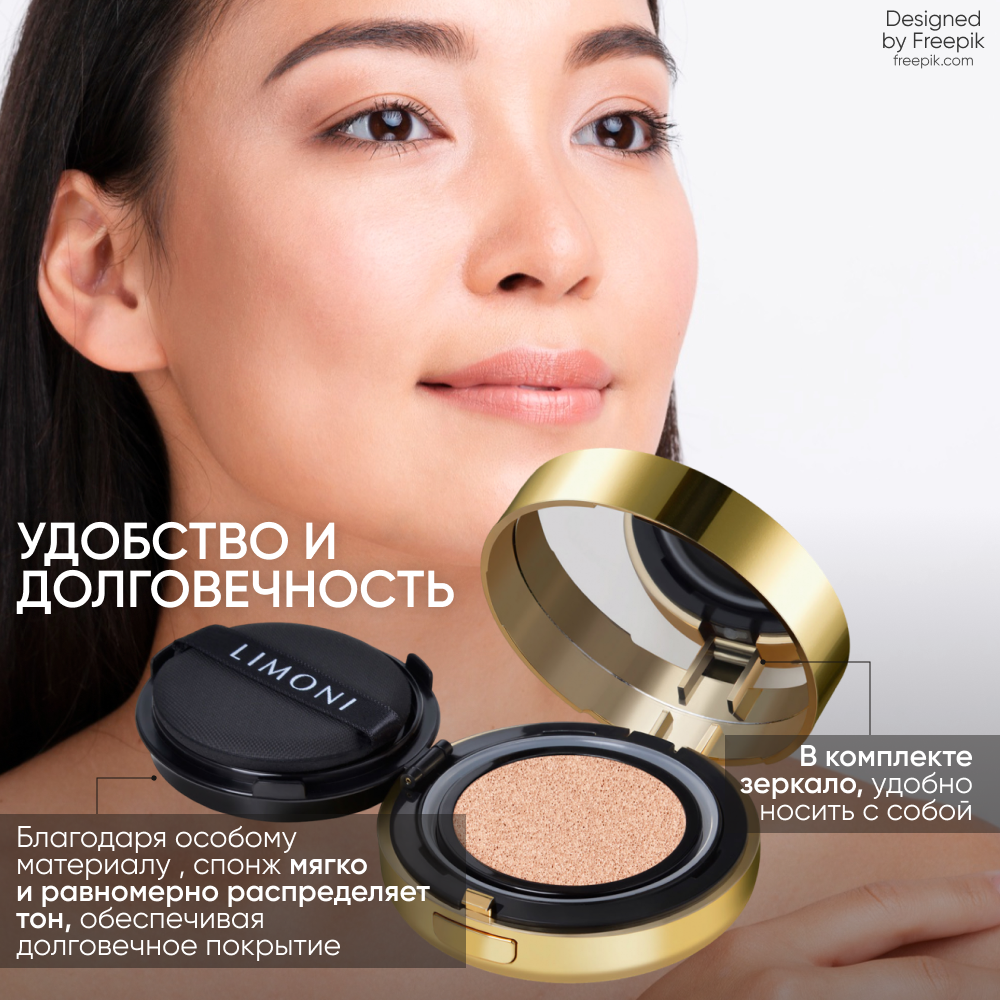 LIMONI Тональный крем кушон для лица с SPF 35/PA++ Корея, основа под макияж Puppy Princess (тон 02, бежевый)