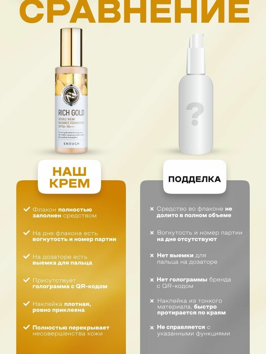 Original Тональный крем для лица с золотом ENOUGH Rich Gold Double Wear Radiance Foundation, SPF 50, тон 13, 100 ml