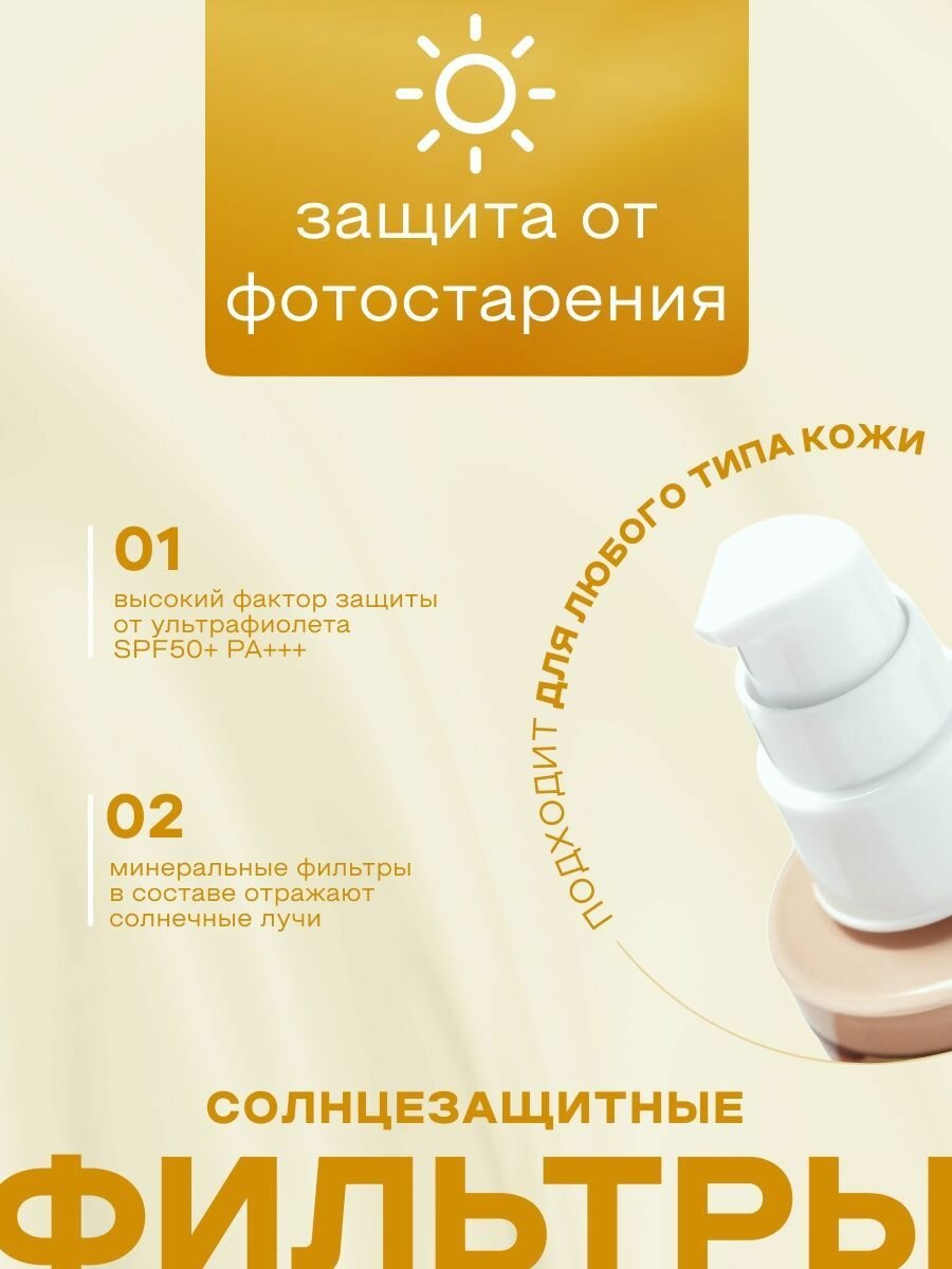 | Особенности | антивозрастное / без эффекта маски / гипоаллергенное / на водной основе / не тестируется на животных / некомедогенное / подходит для ежедневного использования / с дозатором / с минеральными пигментами |