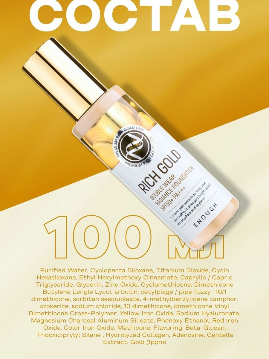 Тональный крем с частичками золота ENOUGH Rich Gold Double Wear Radiance Foundation SPF50+ P, 100 г .