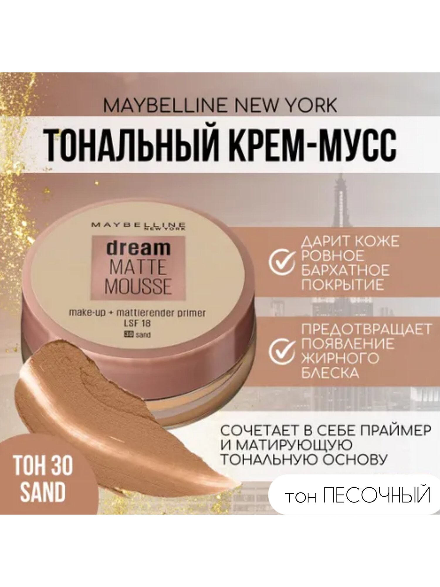 СохранитьMaybelline New York Тональный мусс Dream Matte Mousse, 18 мл, оттенок: 30 Sand интересное: