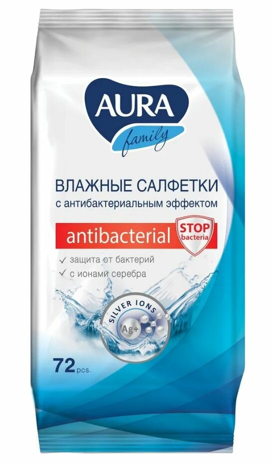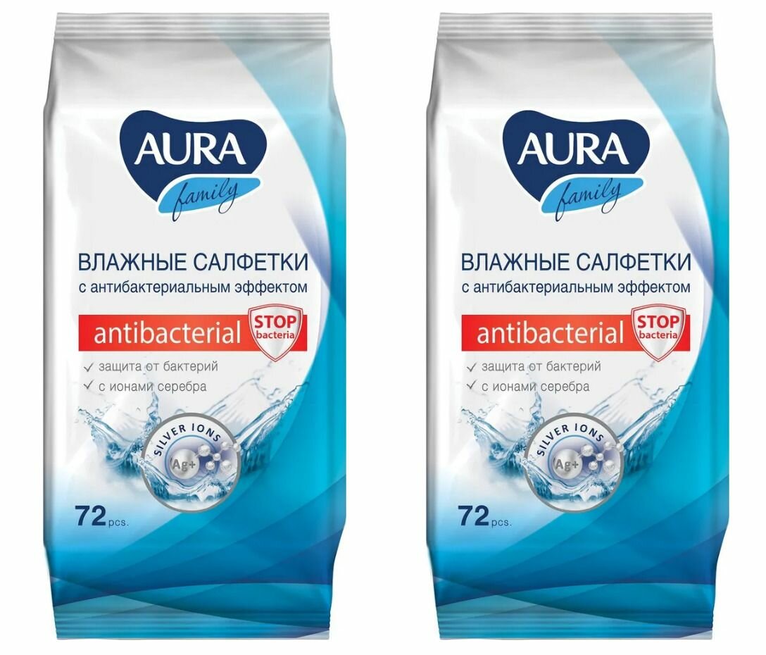 Aura Влажные салфетки Family, с антибактериальным эффектом, 72 шт, 2 шт интересное: