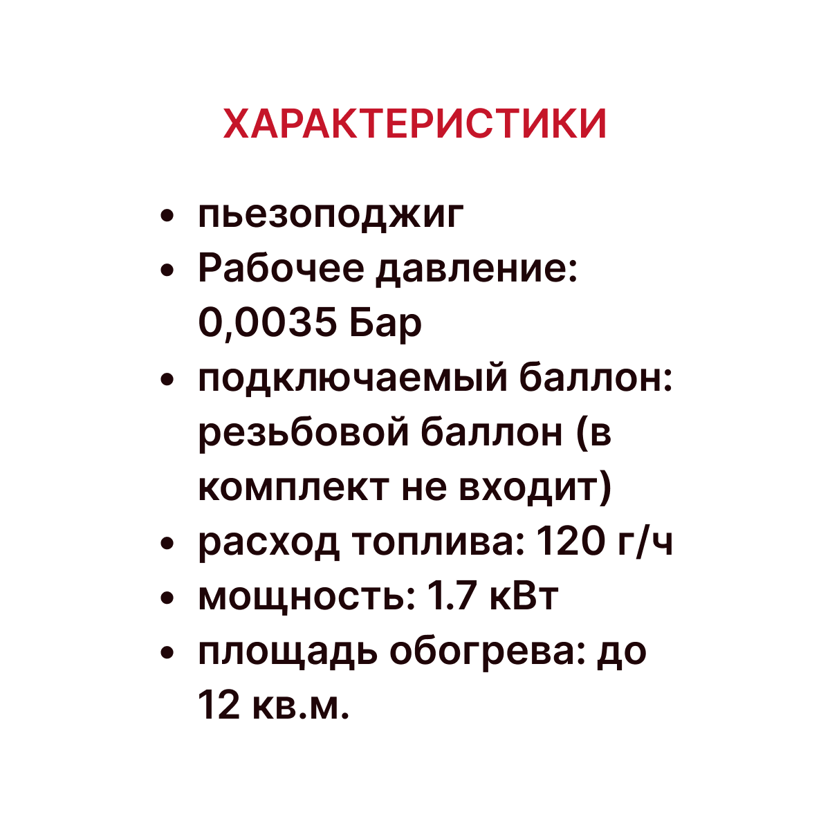 | Тип газового обогревателя | уличный обогреватель |
