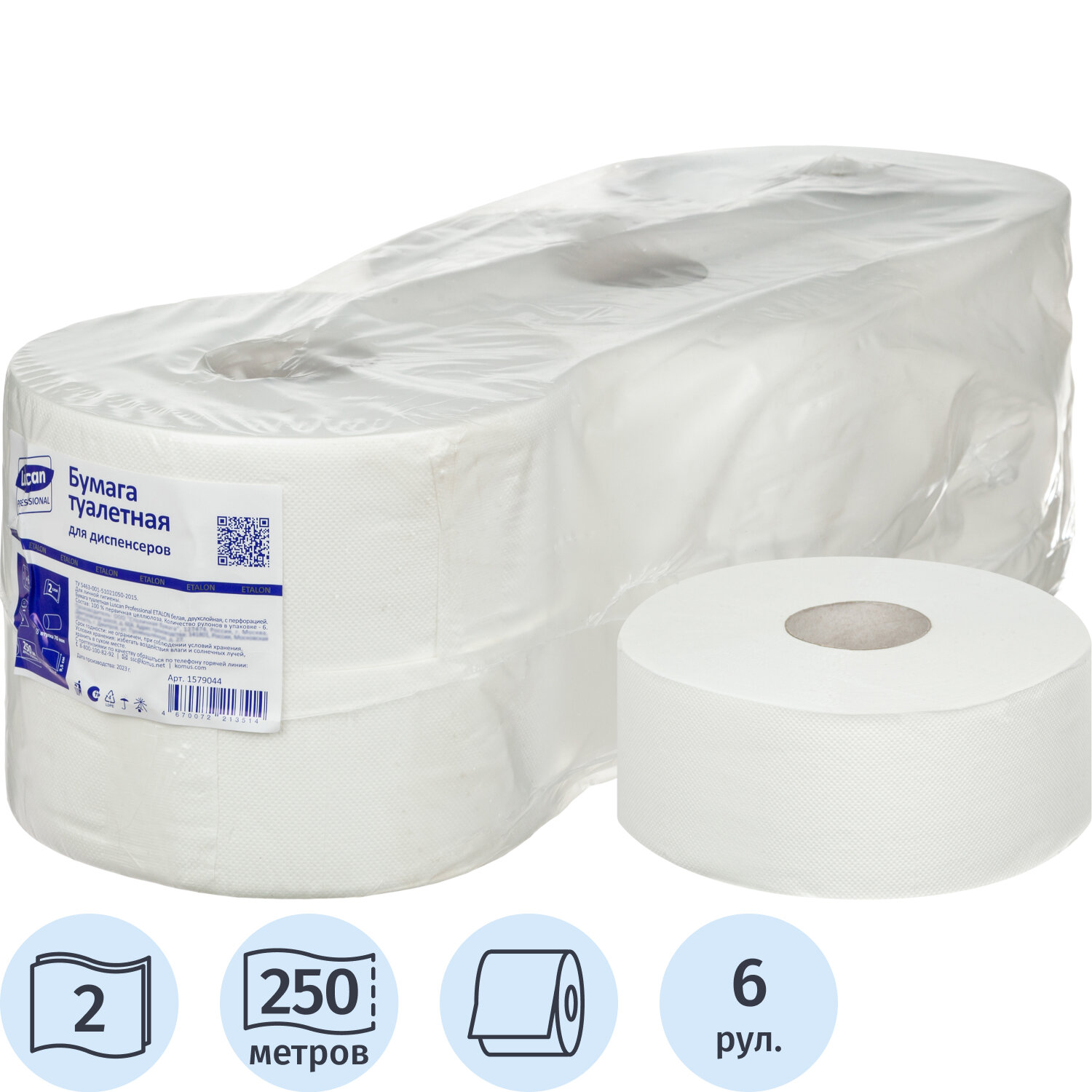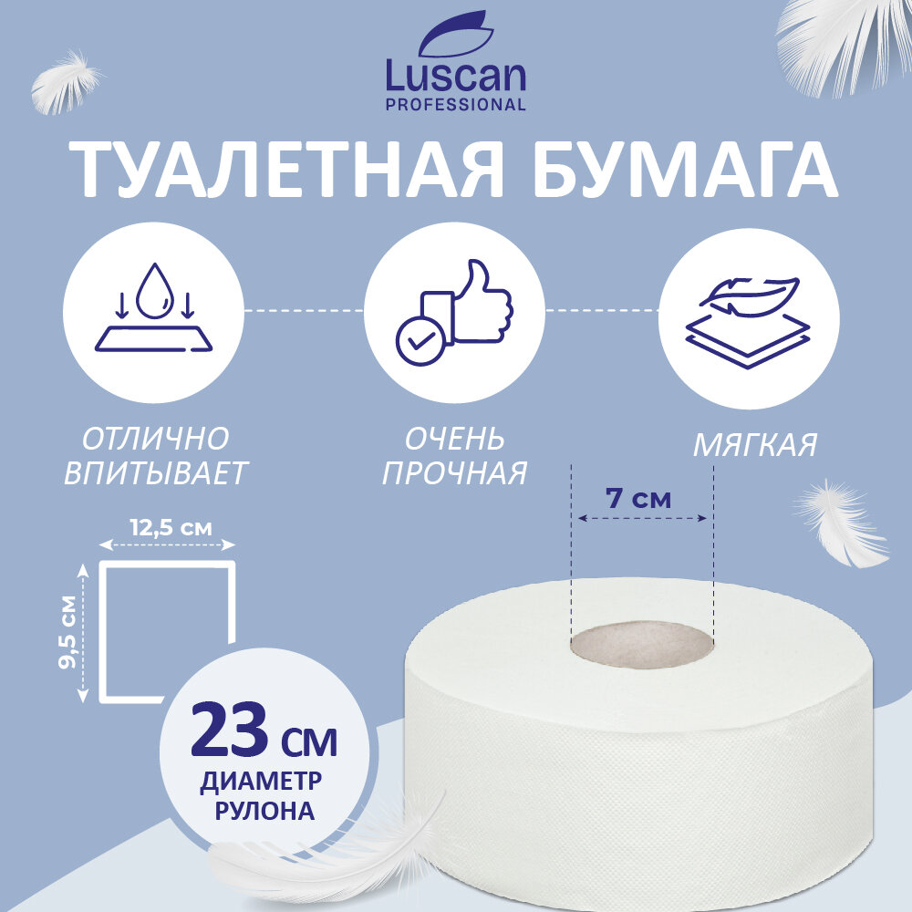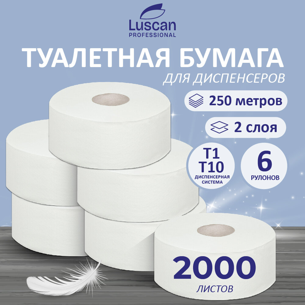 Туалетная бумага Luscan "Professional Etalon", для диспенсеров, 2 слоя, белая, первичная целлюлоза, втулка 250 м, 6 рулонов интересное: