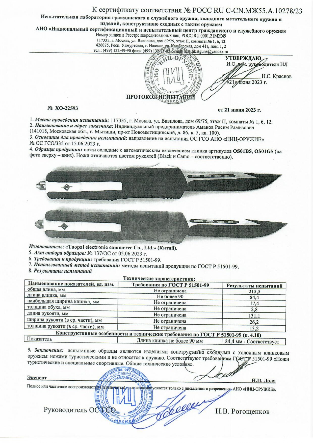 | Длина клинка | 216 мм |