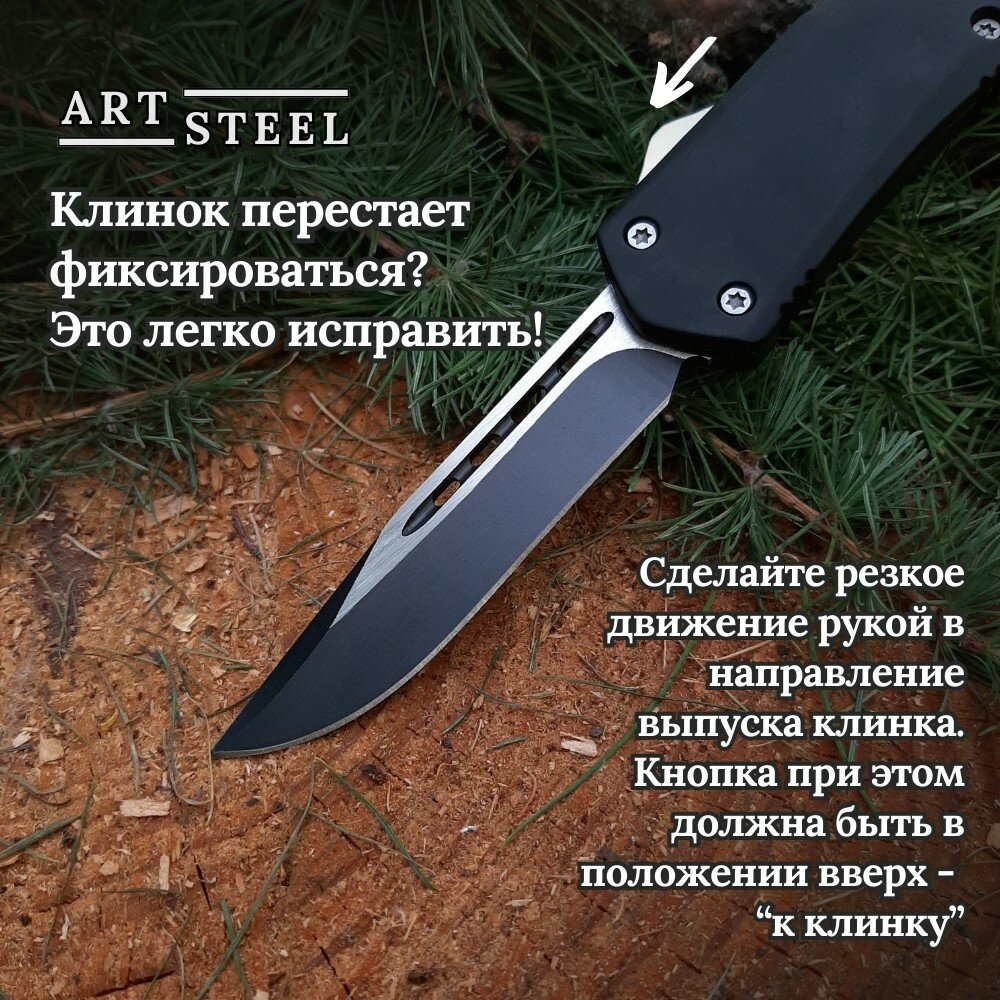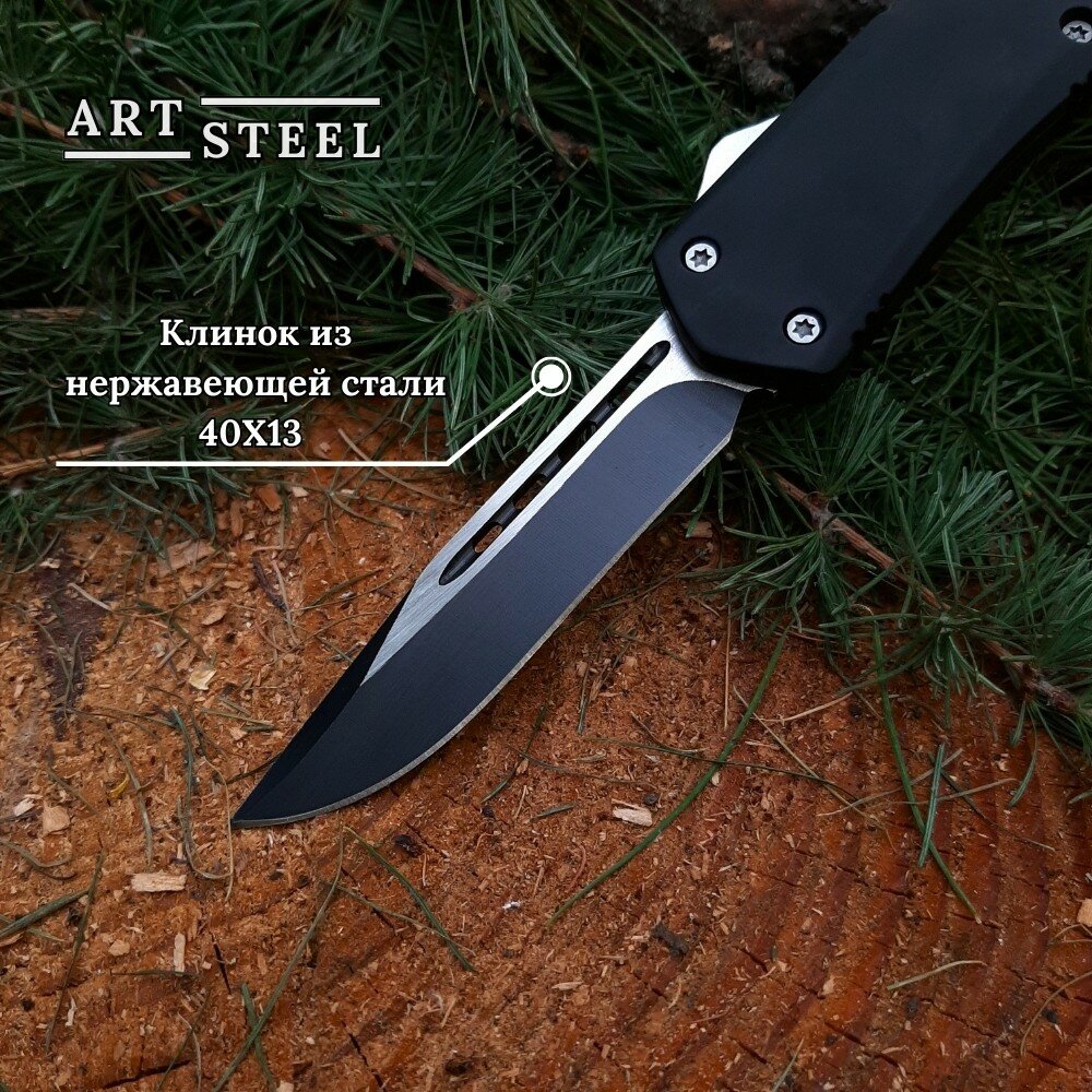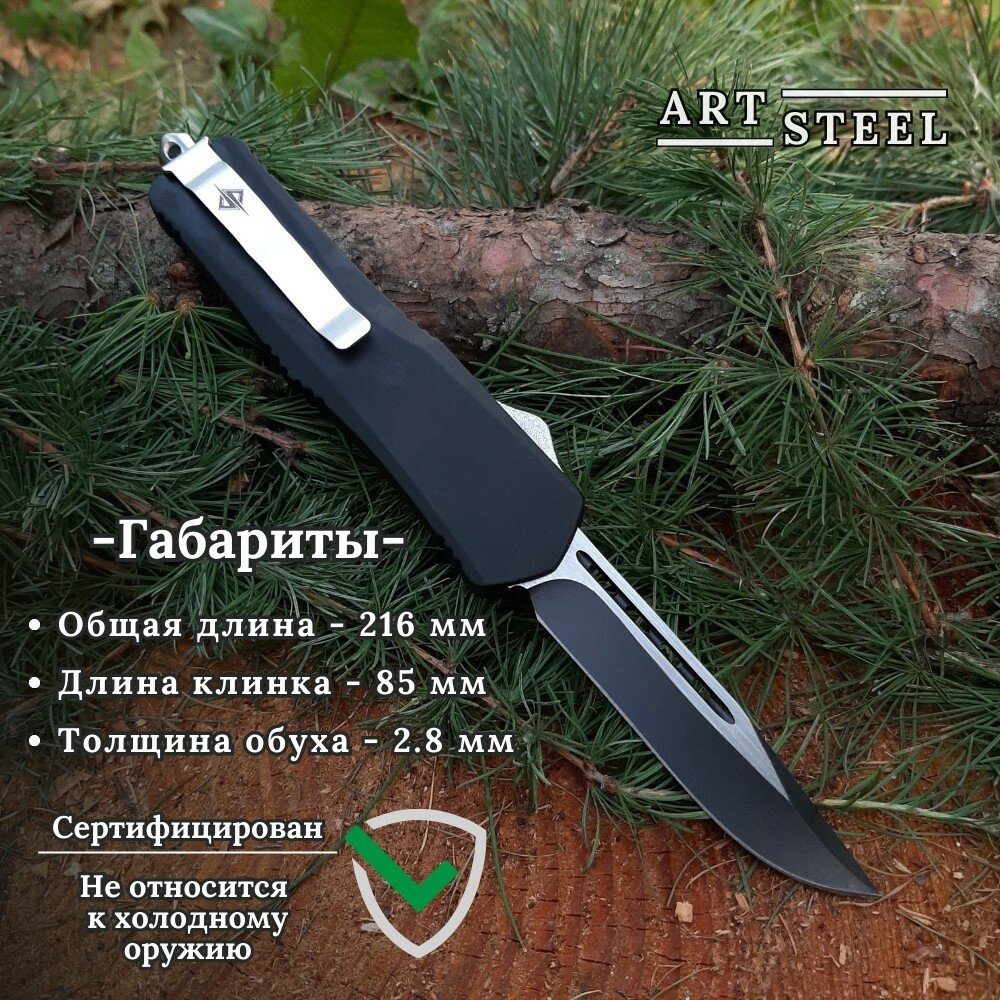 Автоматический складной нож Тирекс (фронтальный), ArtSteel, сталь 440, рукоять алюминий, черный интересное: