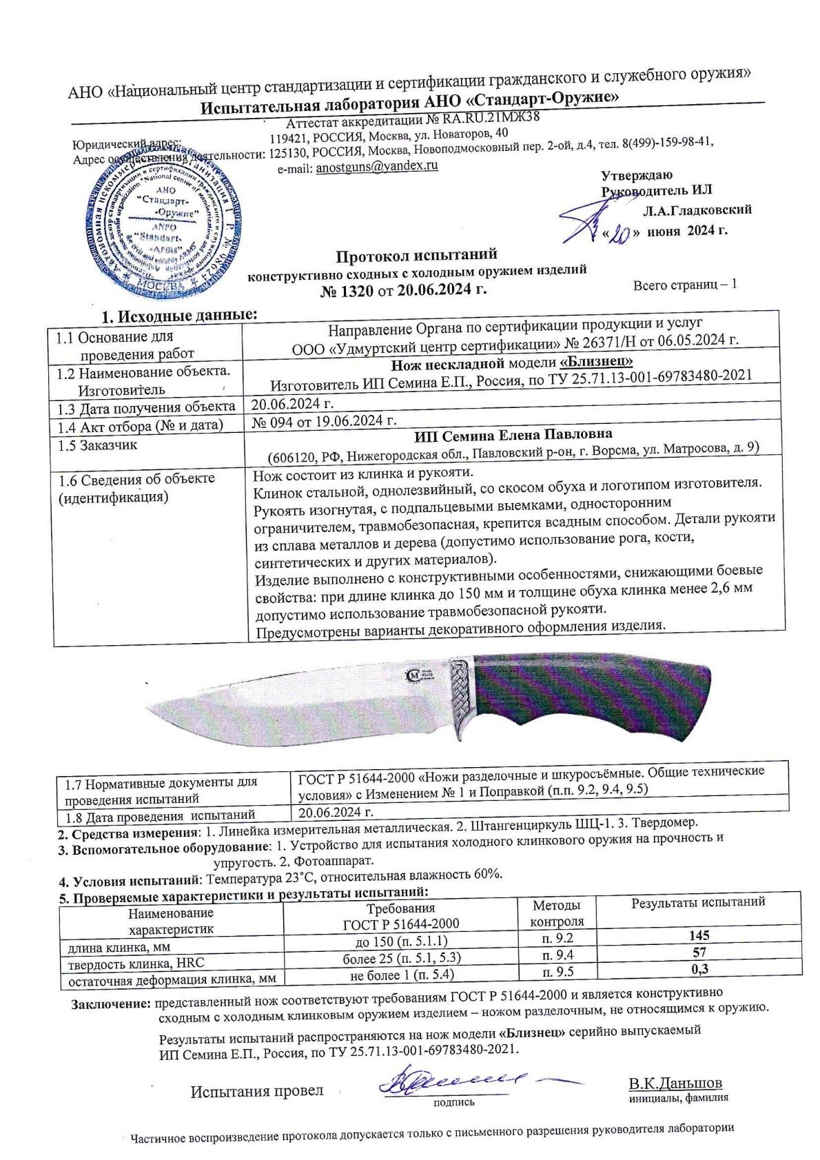 | Характеристики ножа | |
