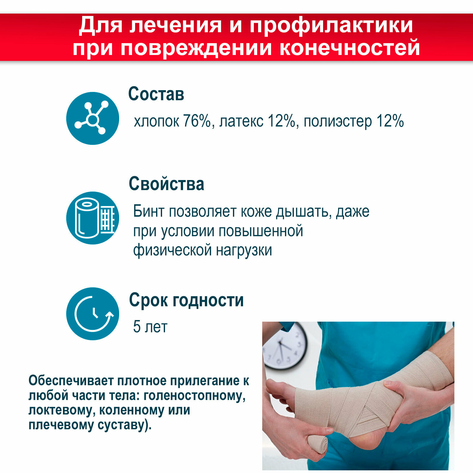 | Дополнительная информация | Внимание! Поскольку варикозная болезнь и отеки имеют несколько степеней тяжести, перед выбором компрессионного бинта проконсультируйтесь с врачом-флебологом. |