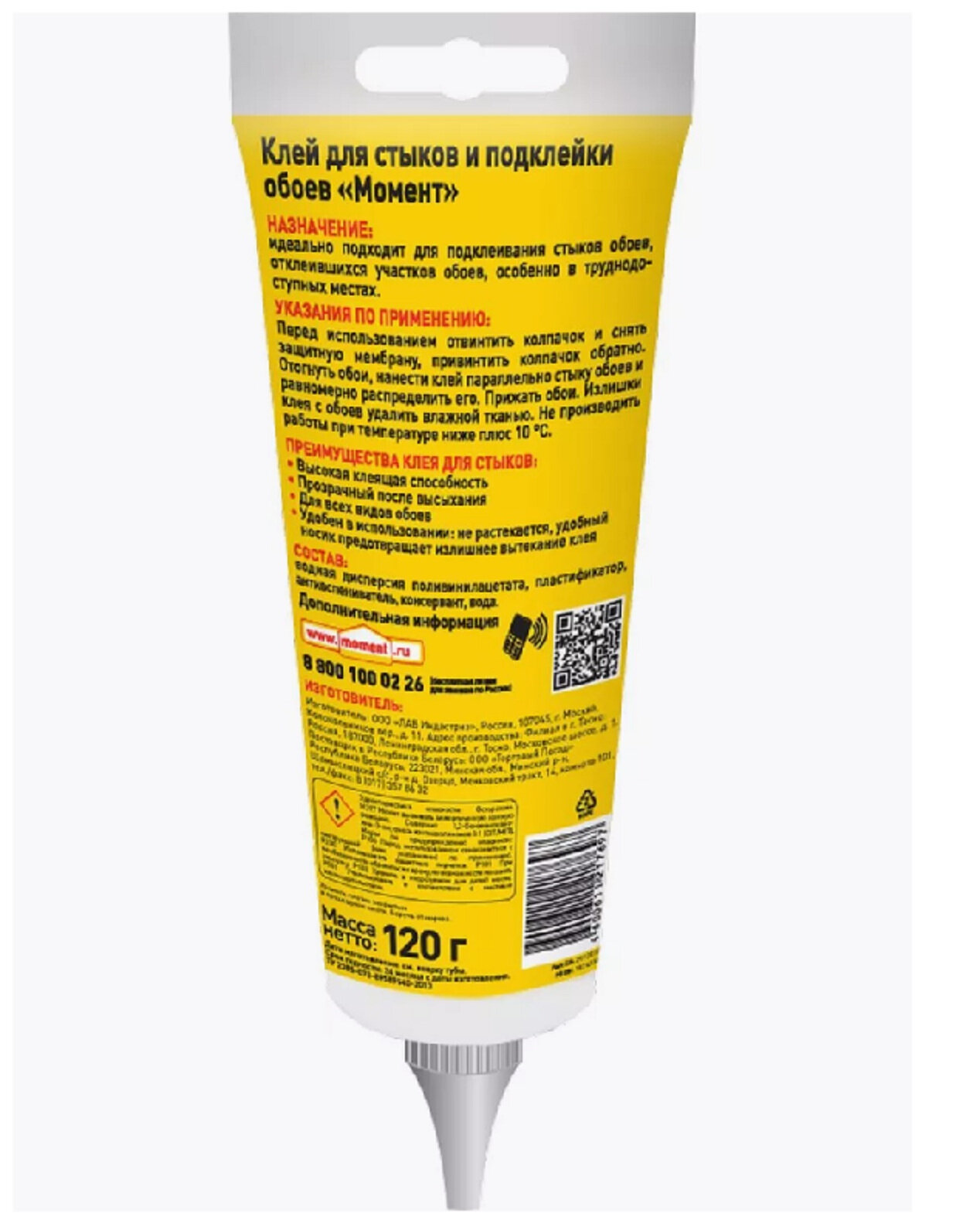 Клей для стыков и подклейки обоев Момент 120г. туба интересное:
