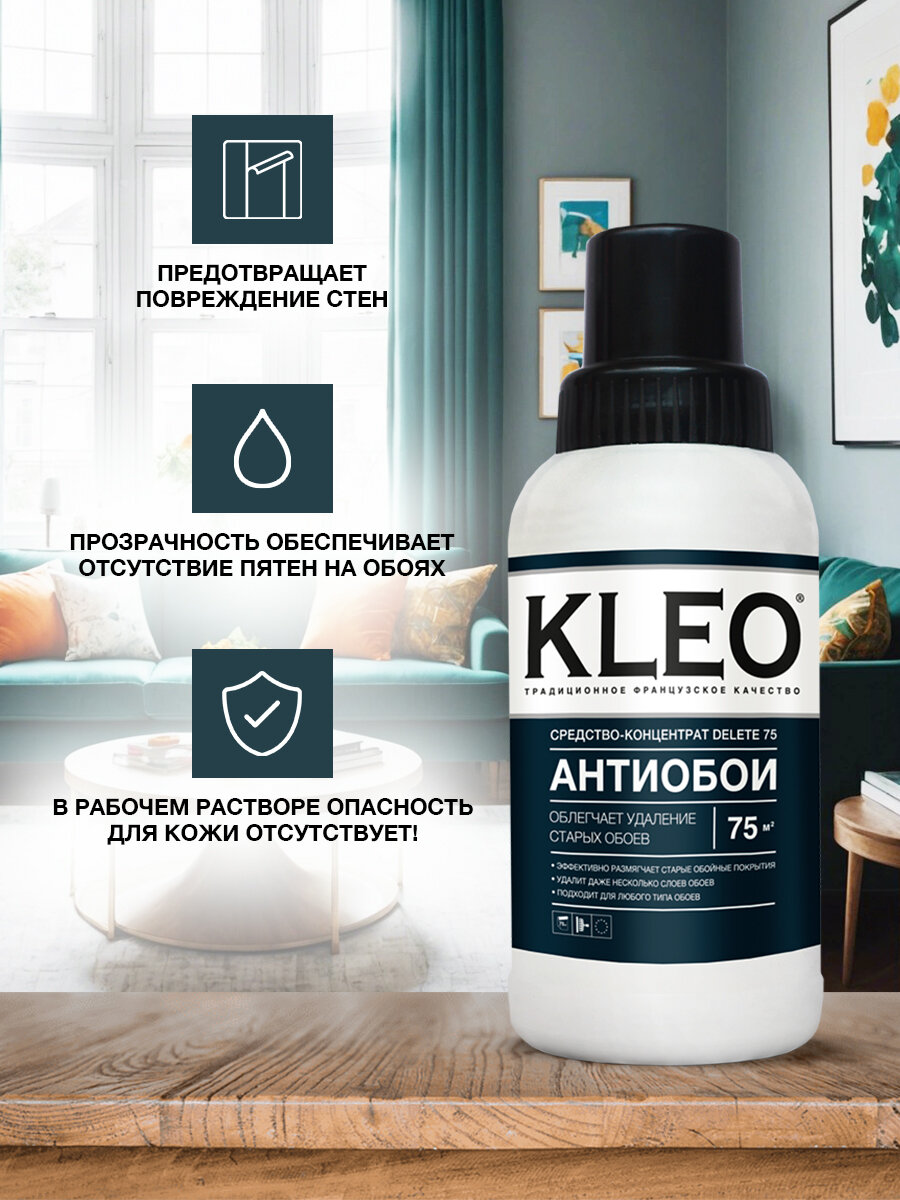 Средство для удаления старых обоев антиобои KLEO DELETE 250мл, 75 кв.м интересное: