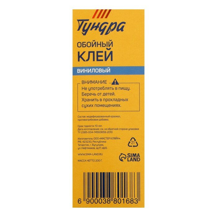Клей обойный тундра, для виниловых обоев, коробка, 200 г интересное: