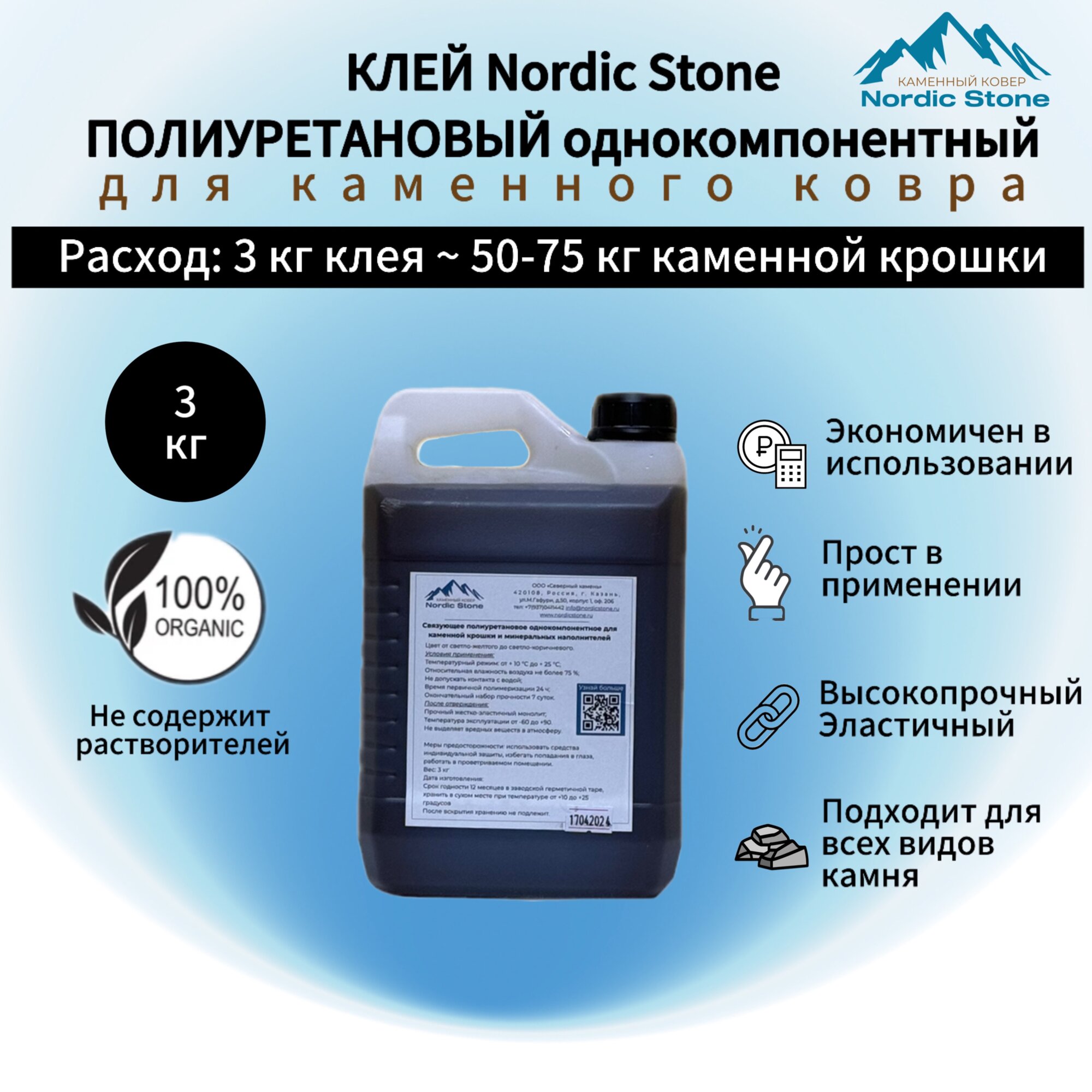 Клей полиуретановый NordicStone. Связующее для каменного ковра (светло-коричневый) 3 кг. интересное: