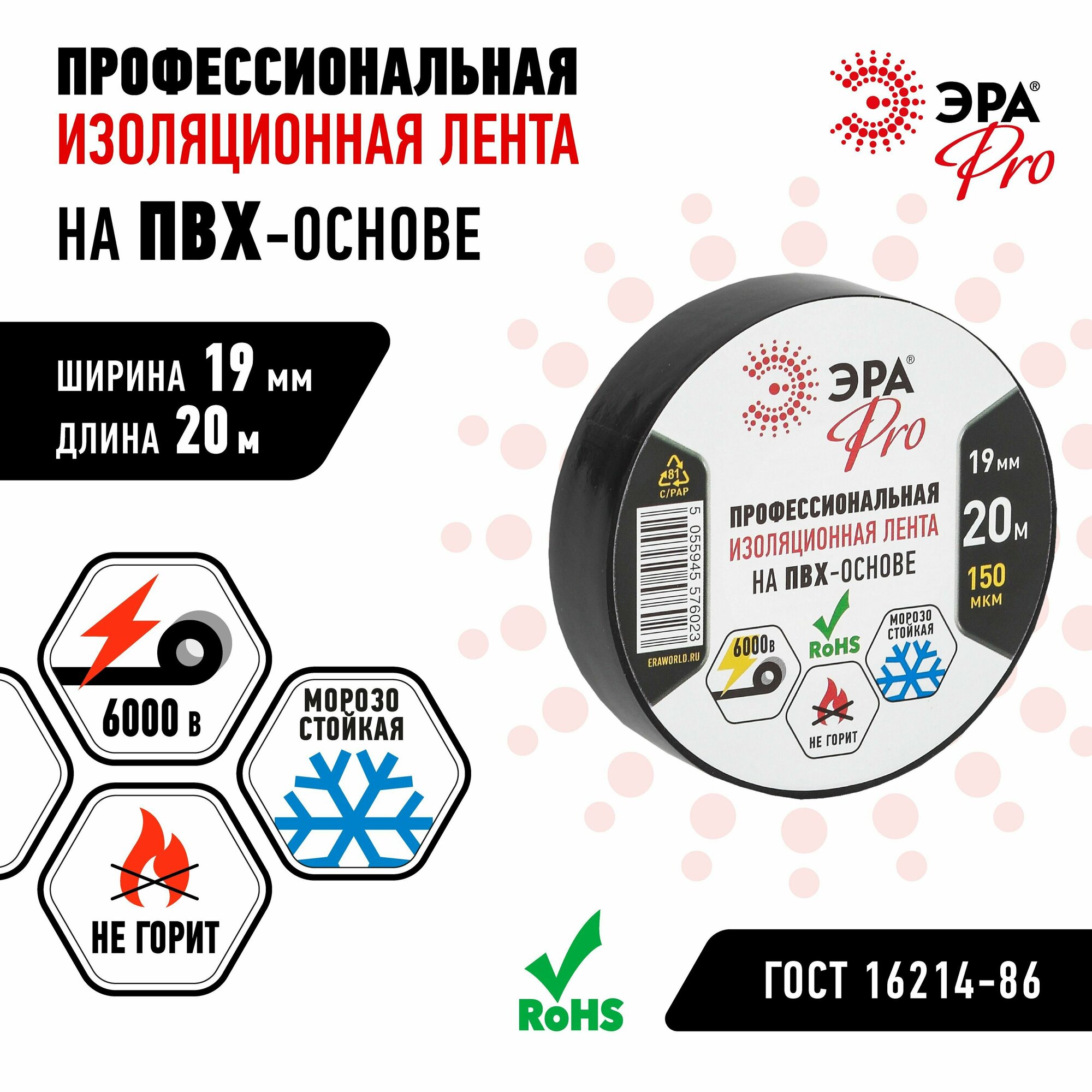 Купить Изолента ПВХ ЭРА PRO PRO150BLACK профессиональная 19мм х 20м 150 мкм, черная